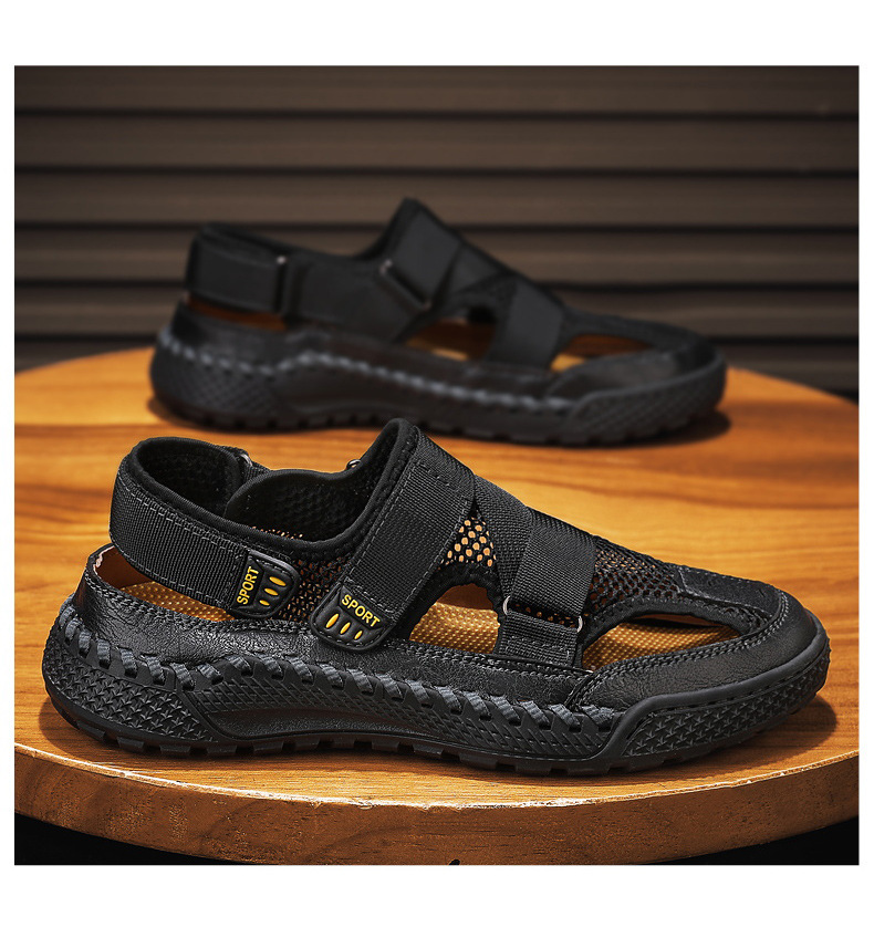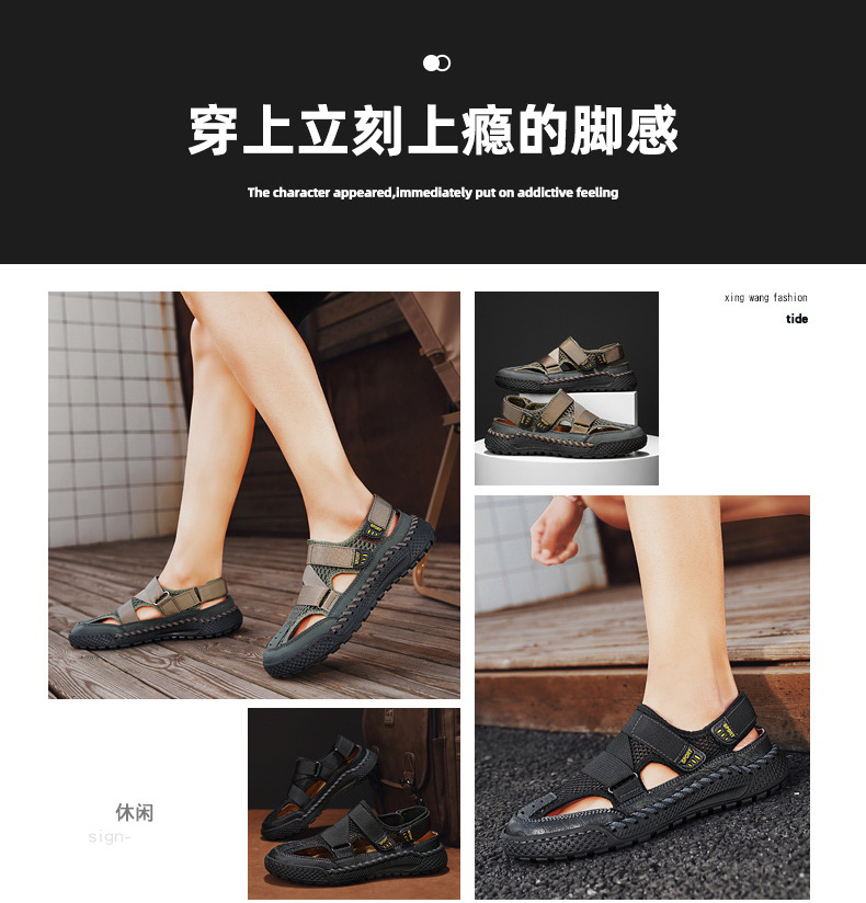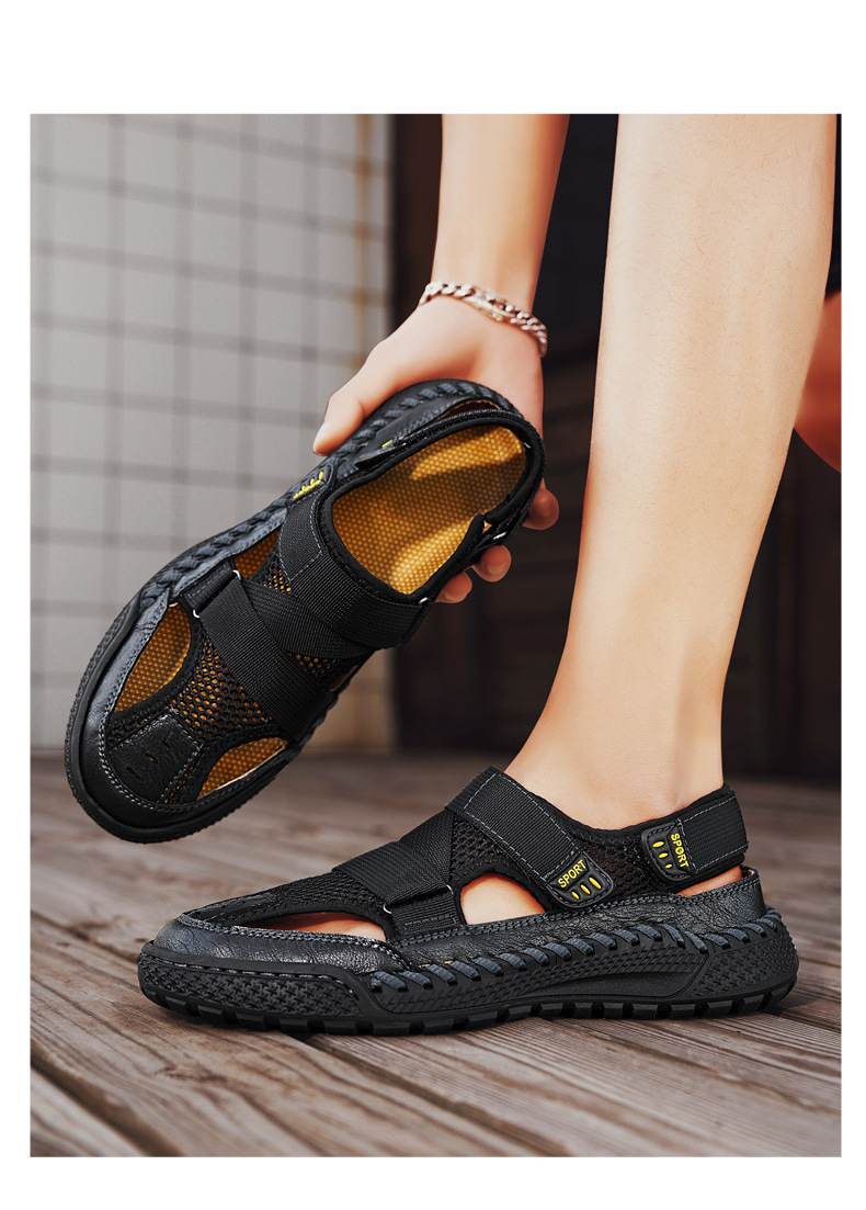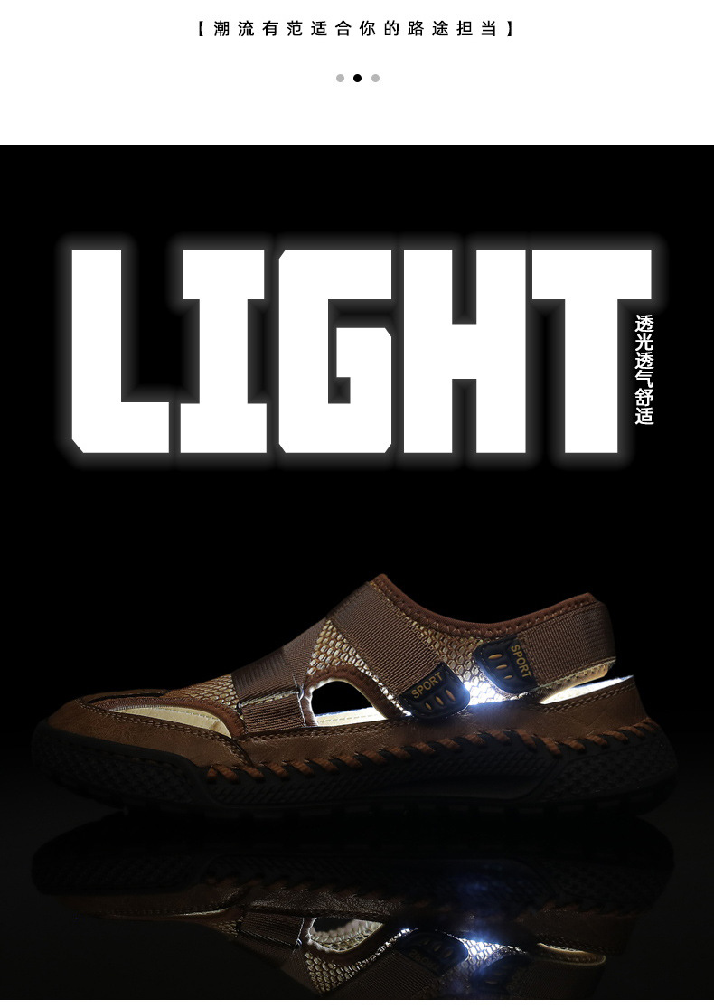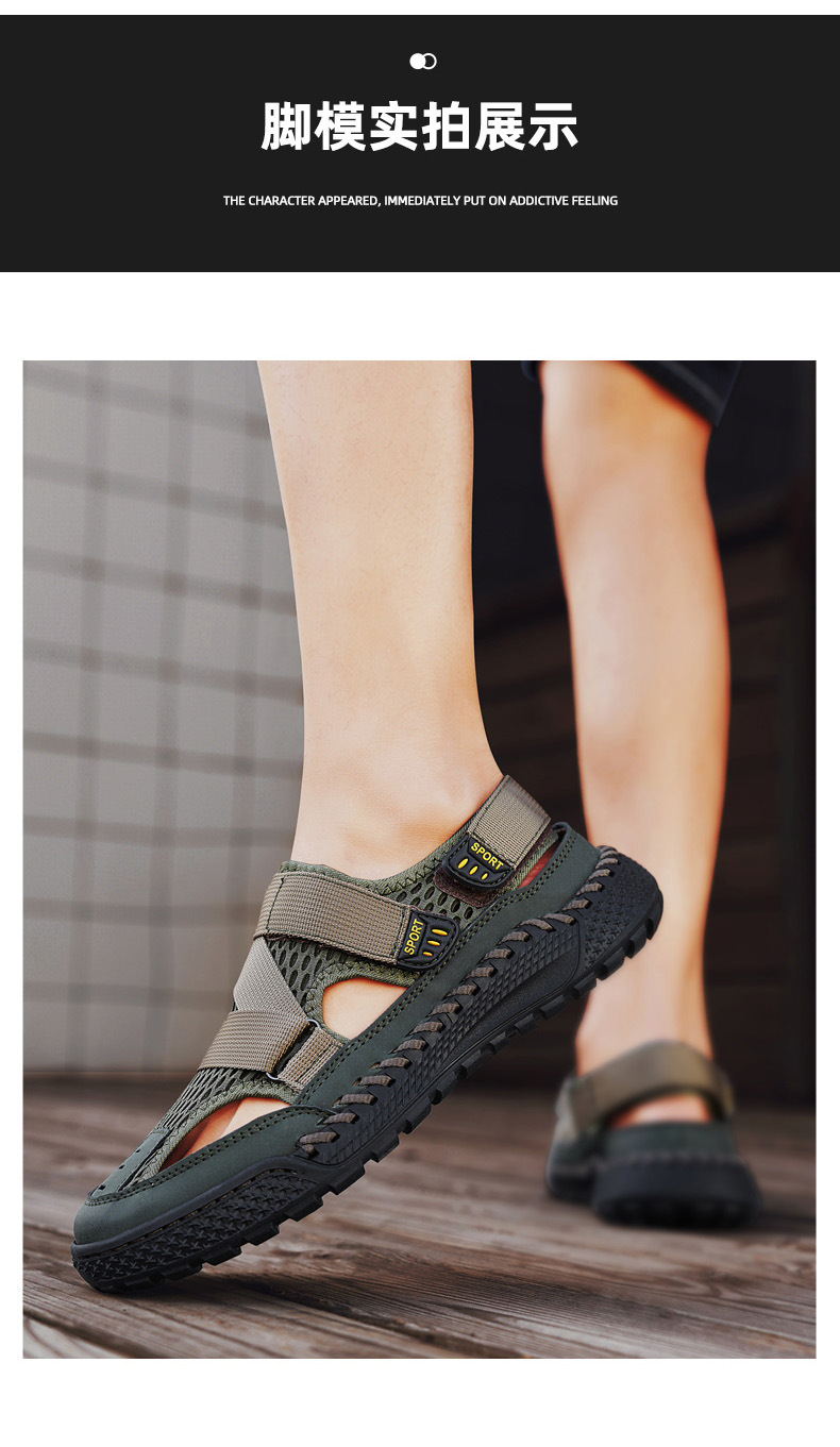 2024跨境夏季凉鞋男款大码沙滩鞋透气休闲网布男鞋日常套脚拖鞋男
