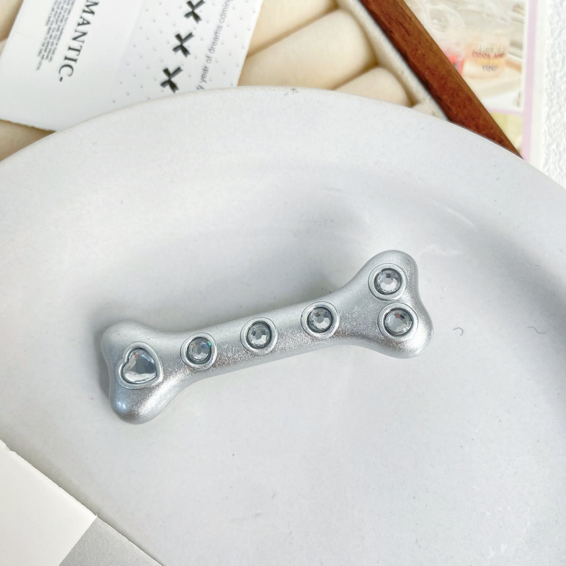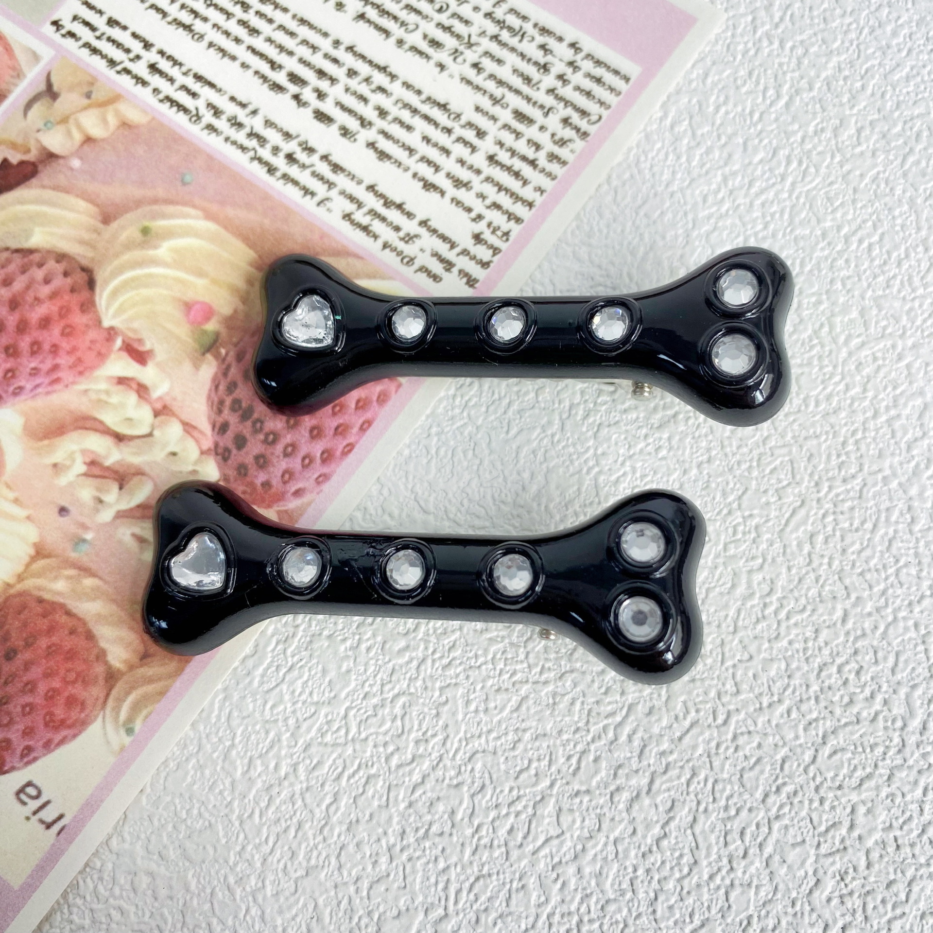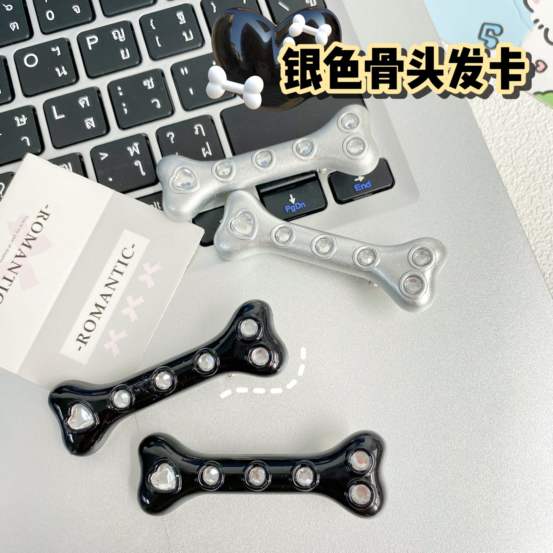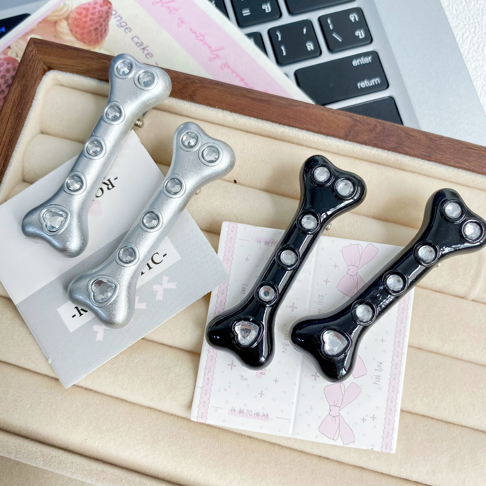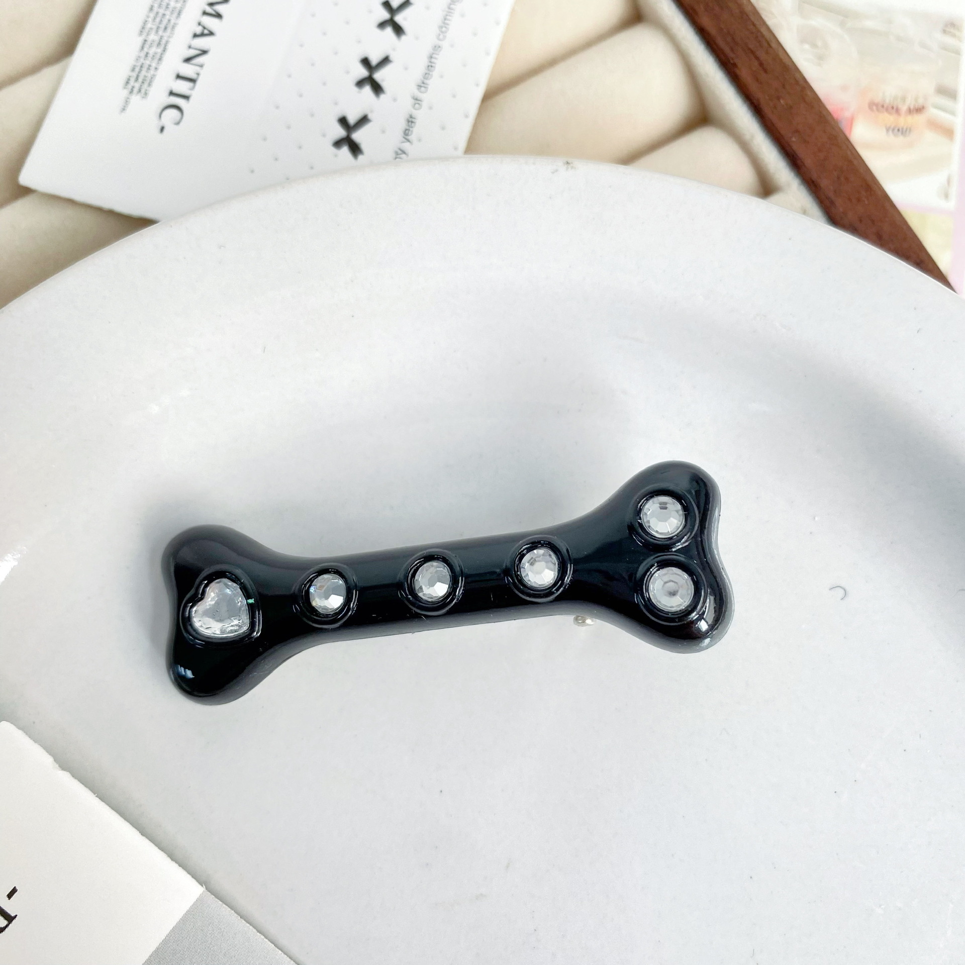 • 실버 다이아몬드 뼈 헤어핀 [블랙]]