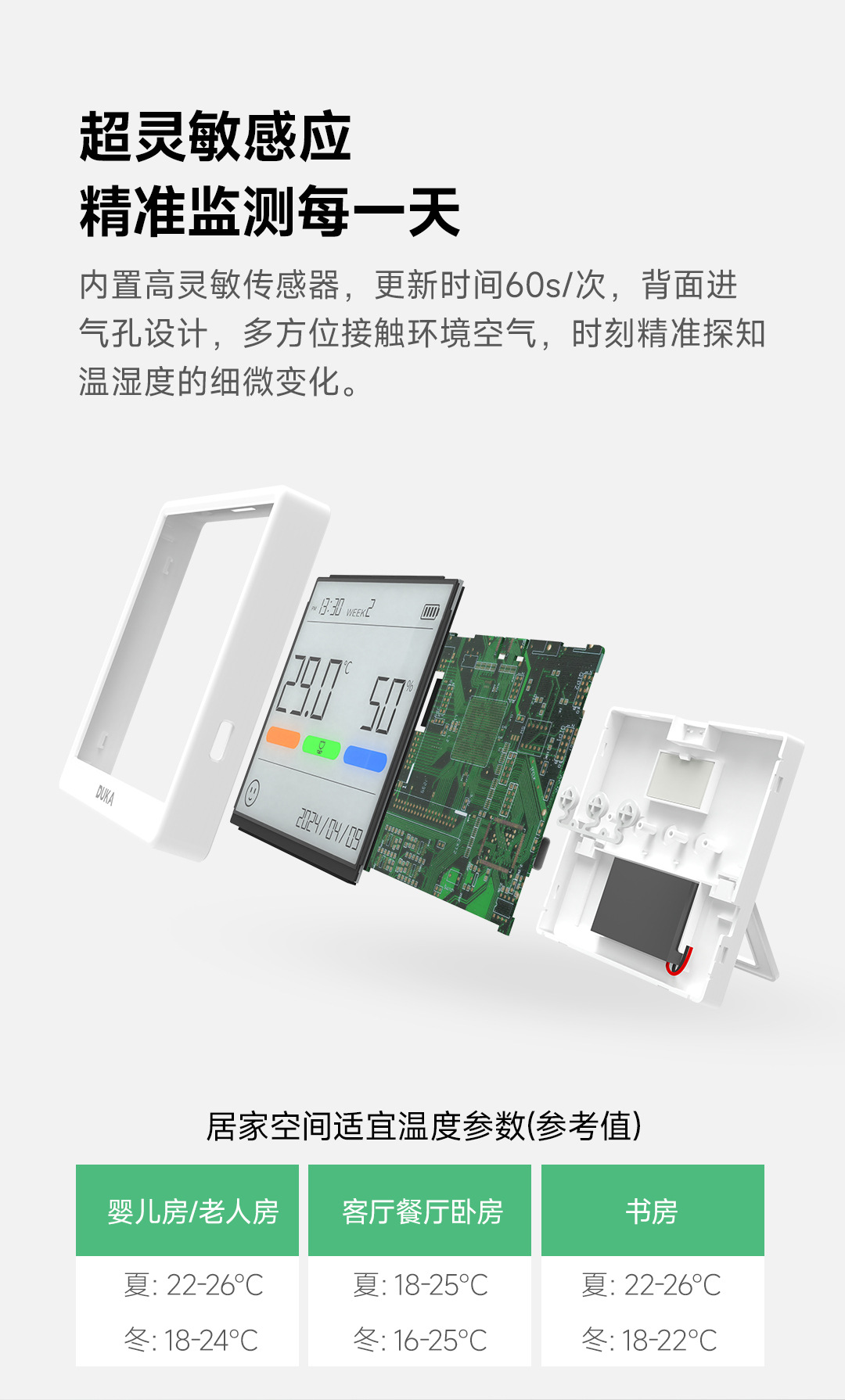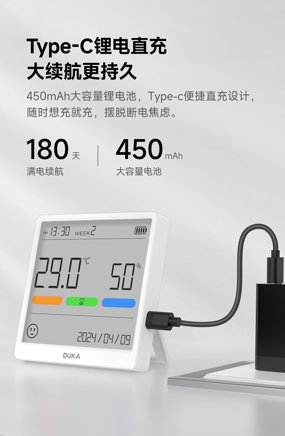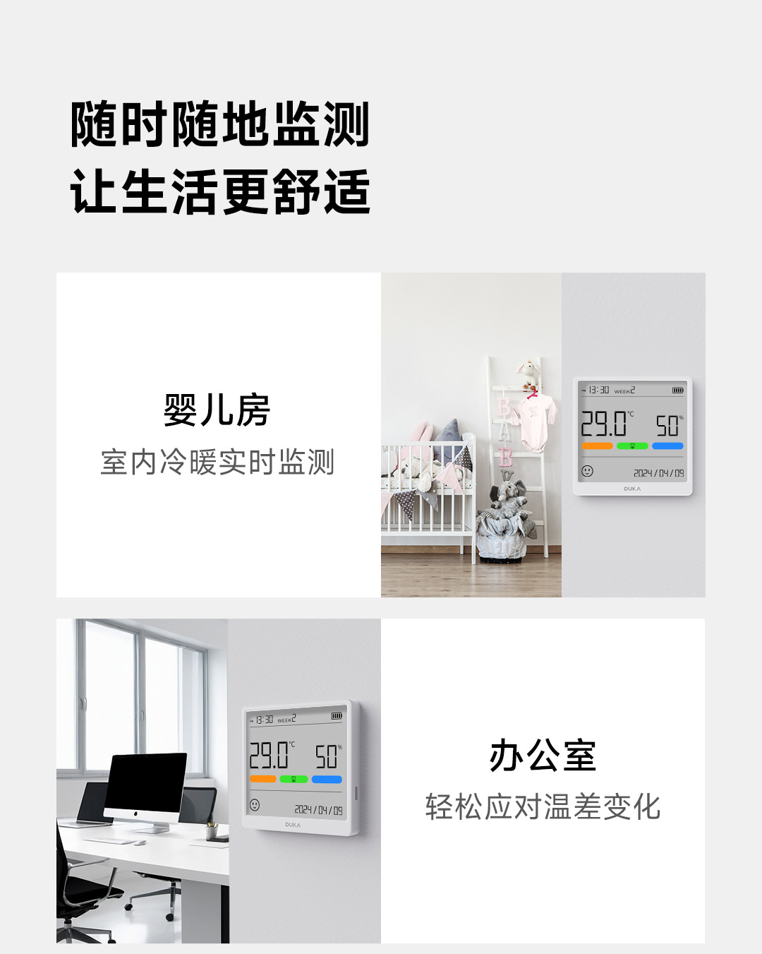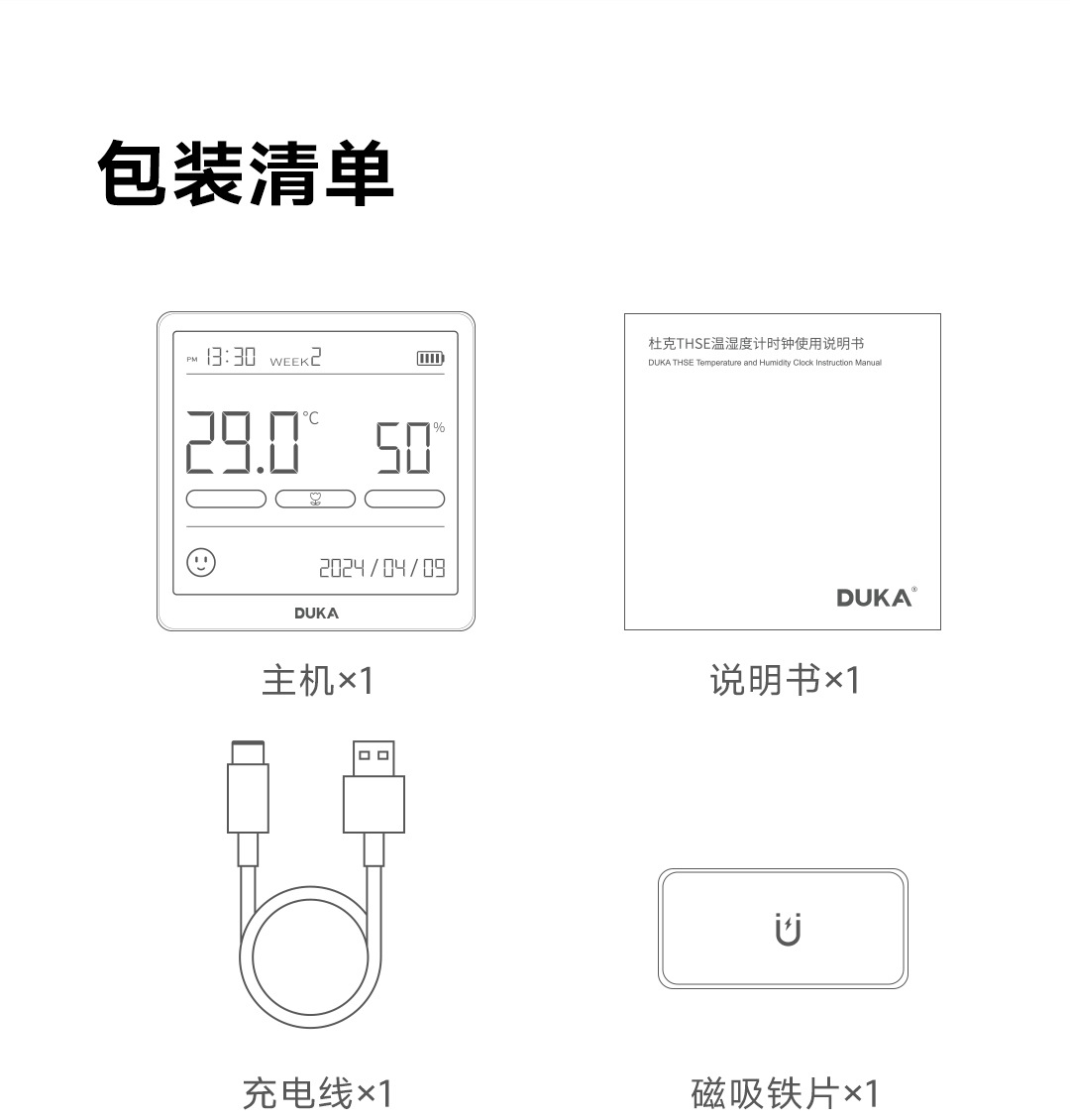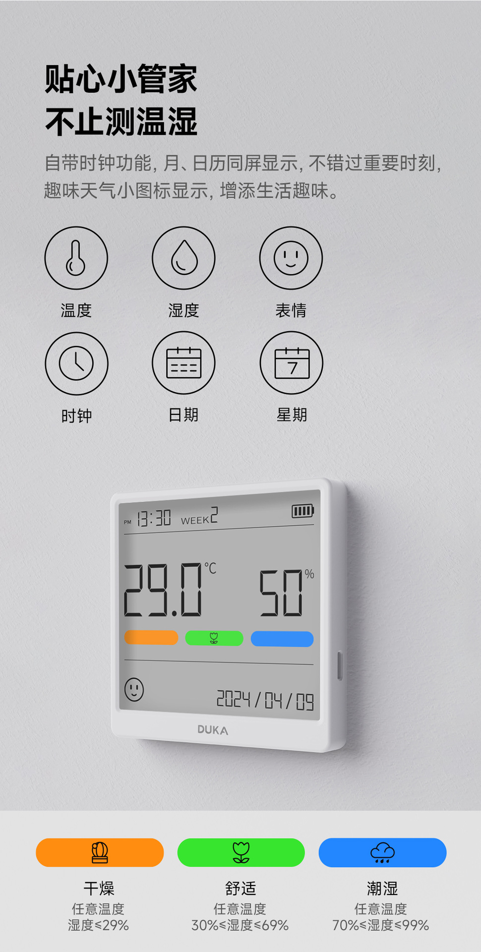 듀크 THSE 온도 및 습도 측정기 실내 시계 가정용 고정밀 디지털 디스플레이 전자 벽 장착 악기스토어 가기