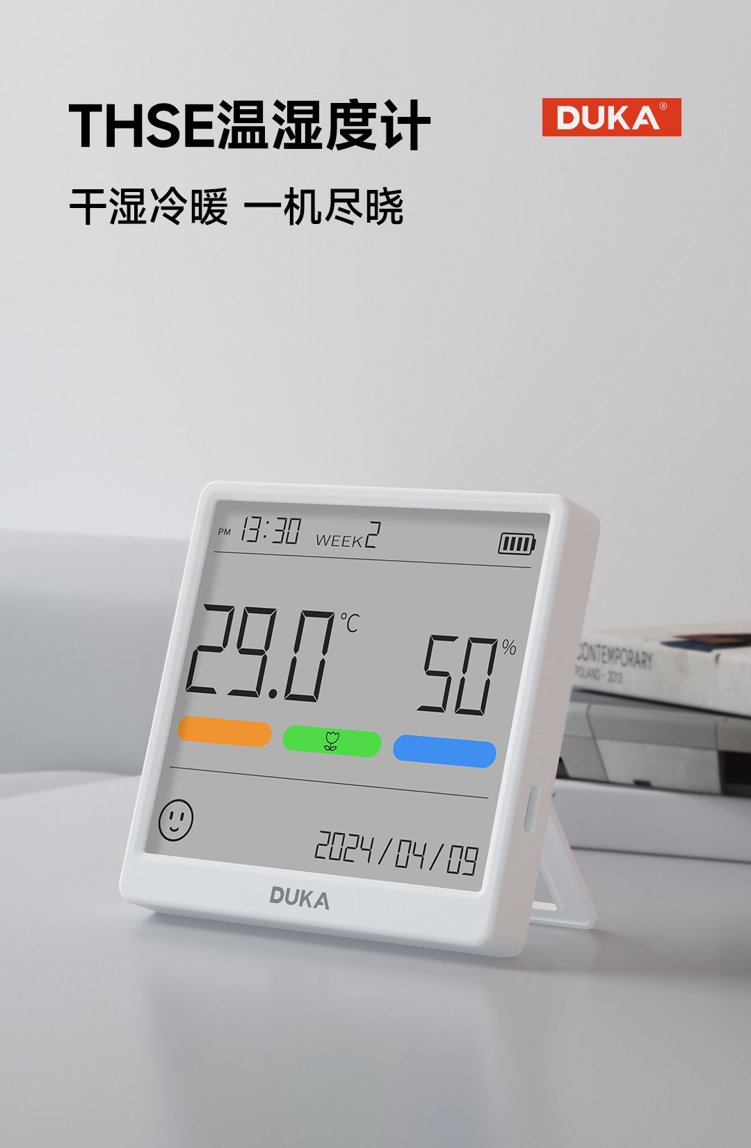 듀크 THSE 온도 및 습도 측정기 실내 시계 가정용 고정밀 디지털 디스플레이 전자 벽 장착 악기