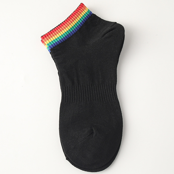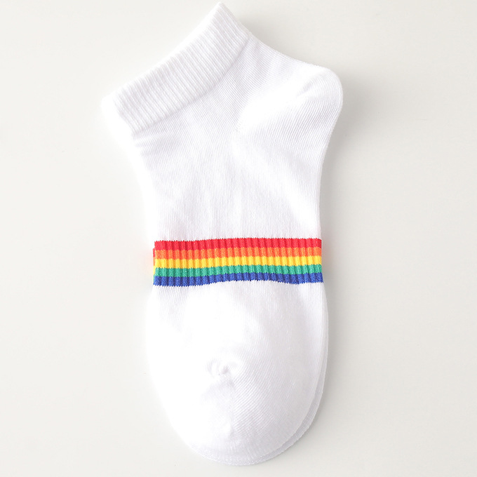 순수 코튼 양말 여성용 여름 얇은 코튼 양말 항균 및 탈취제 미드 스툴 양말 여성용 화이트 패셔너블 레인보우