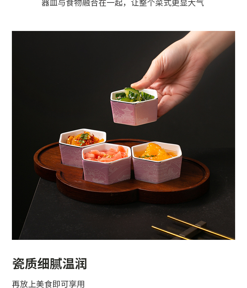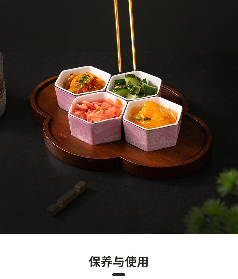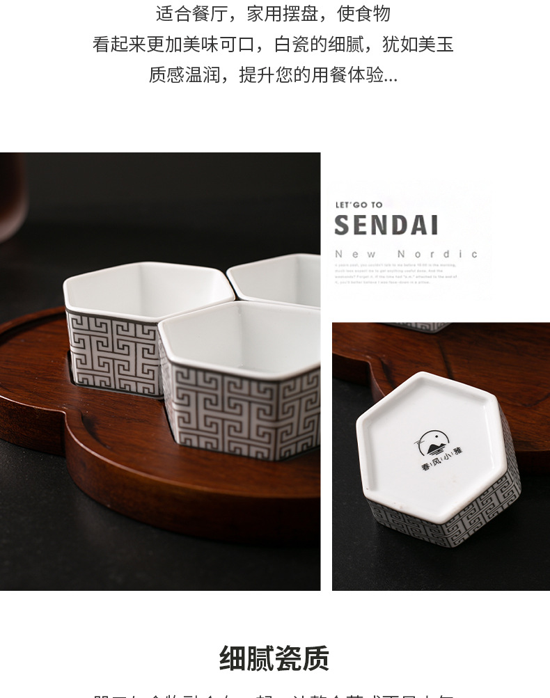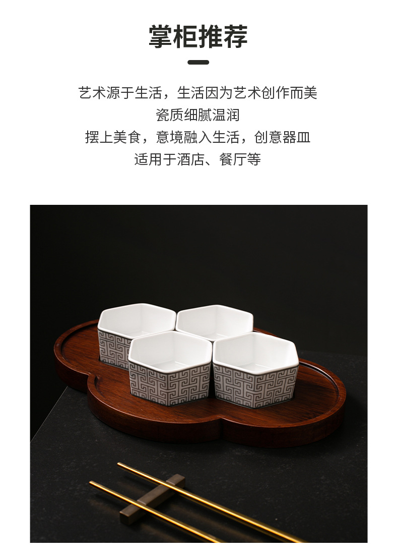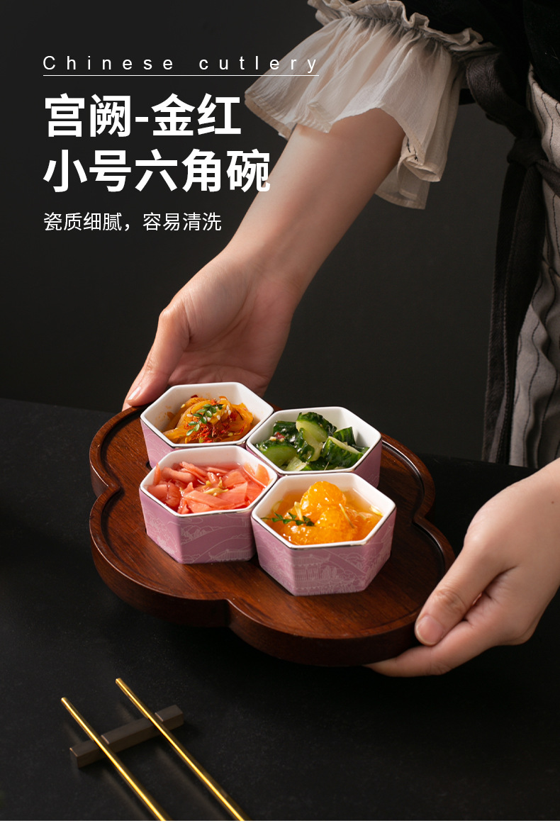 | Gong Que Jin Hong | "스몰 사이즈 육각형 그릇" 중국 세라믹 식기 클럽 간식 차가운 요리 4 칸 플래터스토어 가기