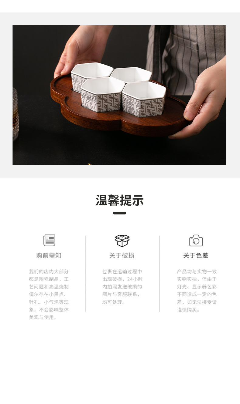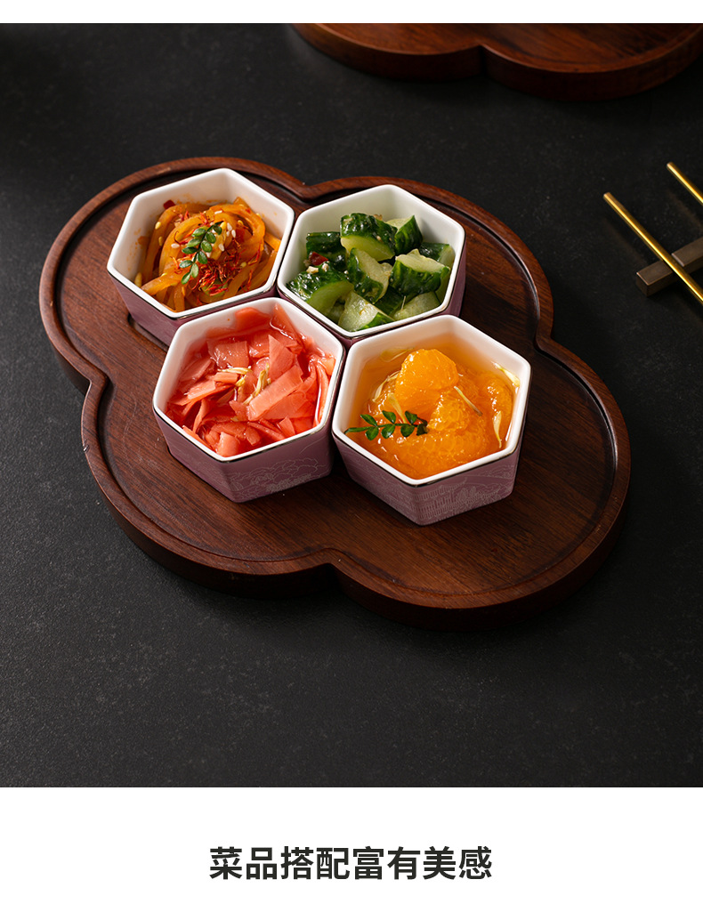 • 매화 꽃 팔레트-Ruyi 블랙 골드와 스몰 사이즈 육각 그릇