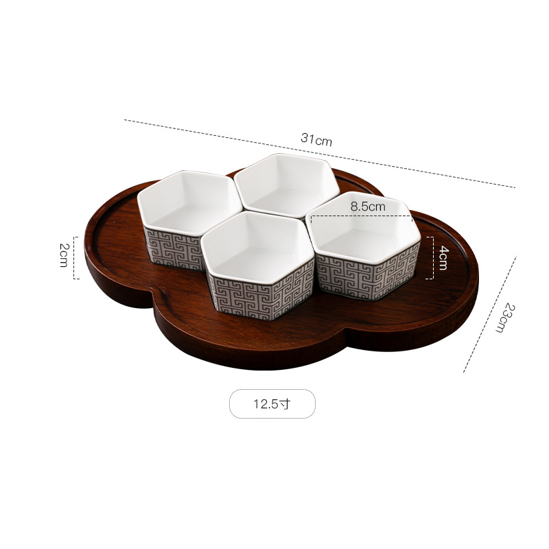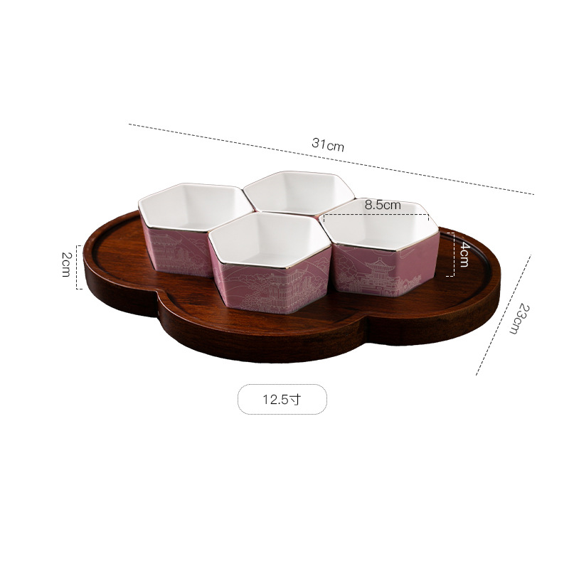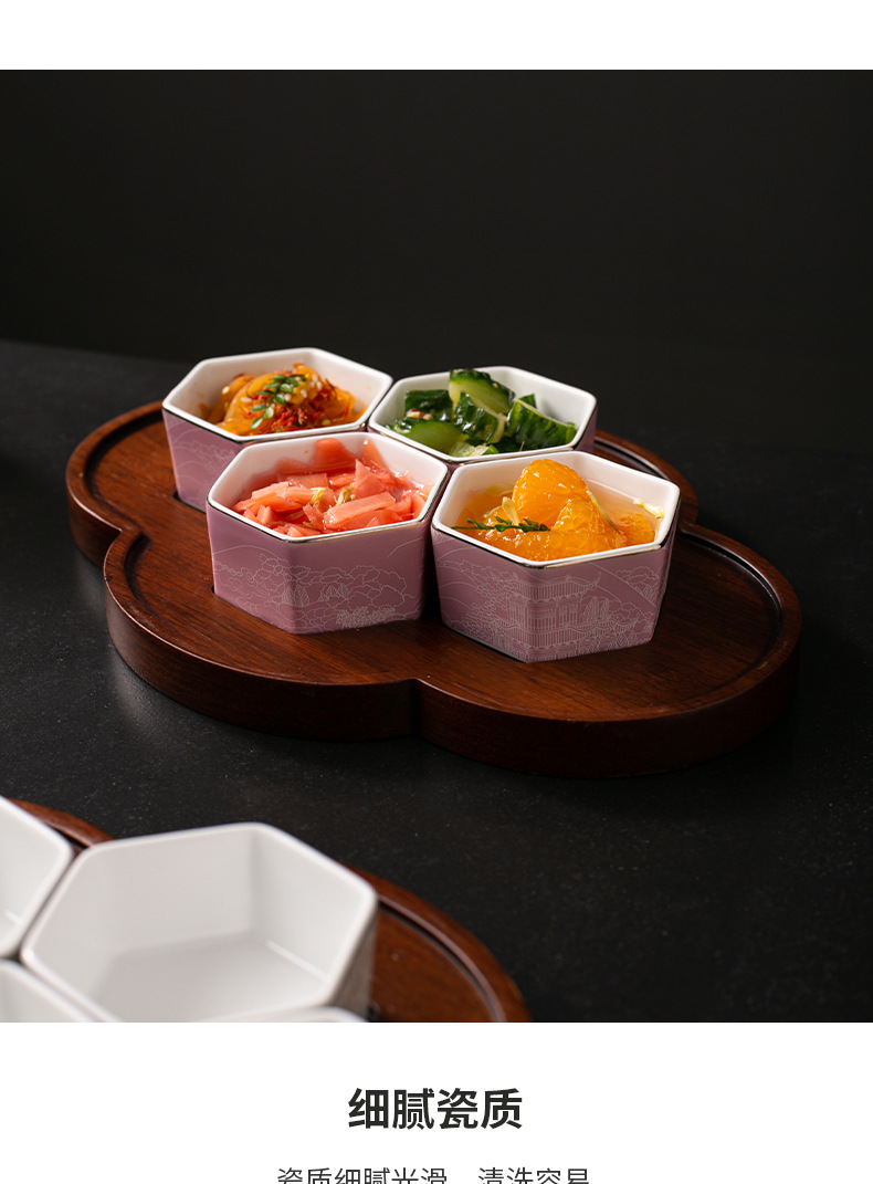 | Gong Que Jin Hong | "스몰 사이즈 육각형 그릇" 중국 세라믹 식기 클럽 간식 차가운 요리 4 칸 플래터