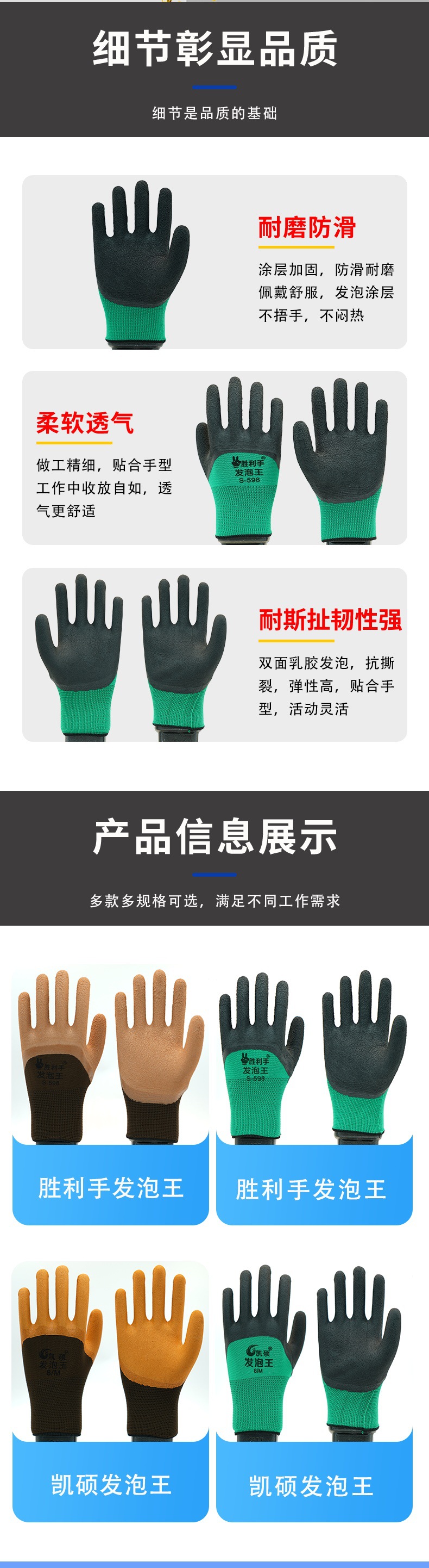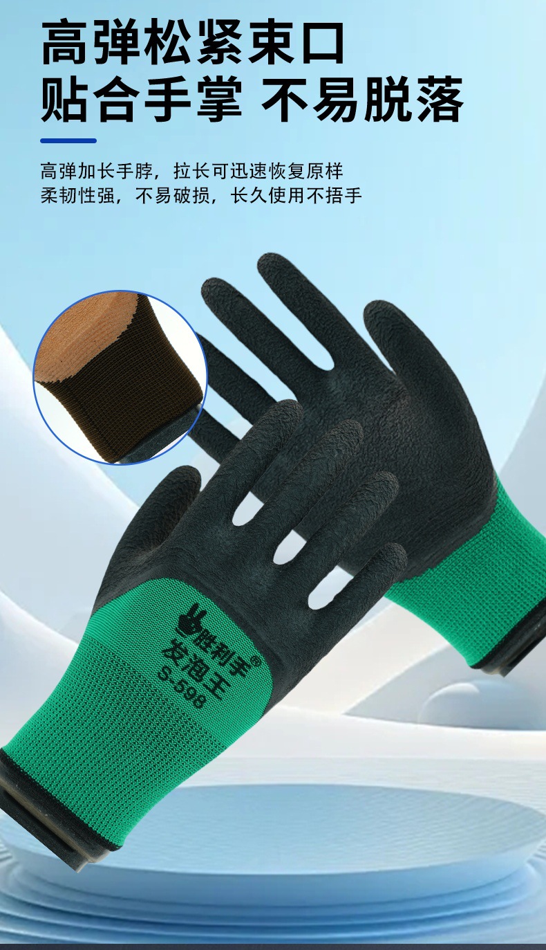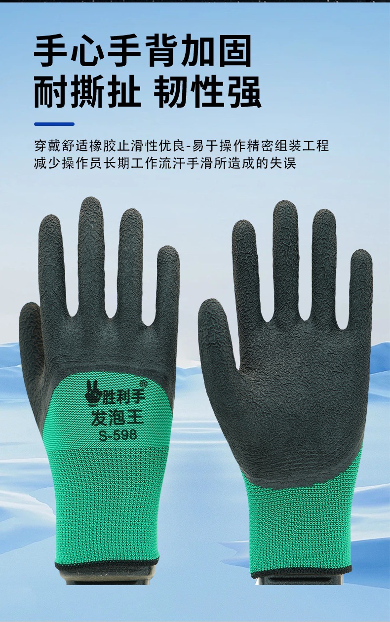 노동 보호 장갑 발포 나일론 고무 라텍스 내마모성 미끄럼 방지 두꺼운 방수 통기성 노동 안전 보호 장갑스토어 가기