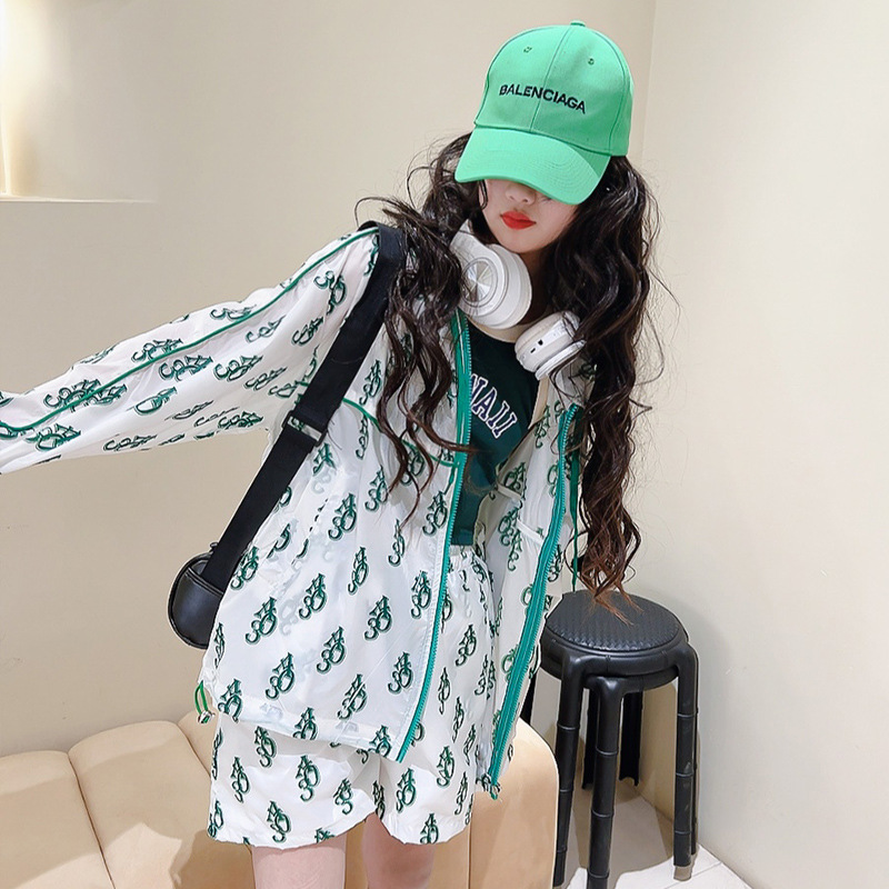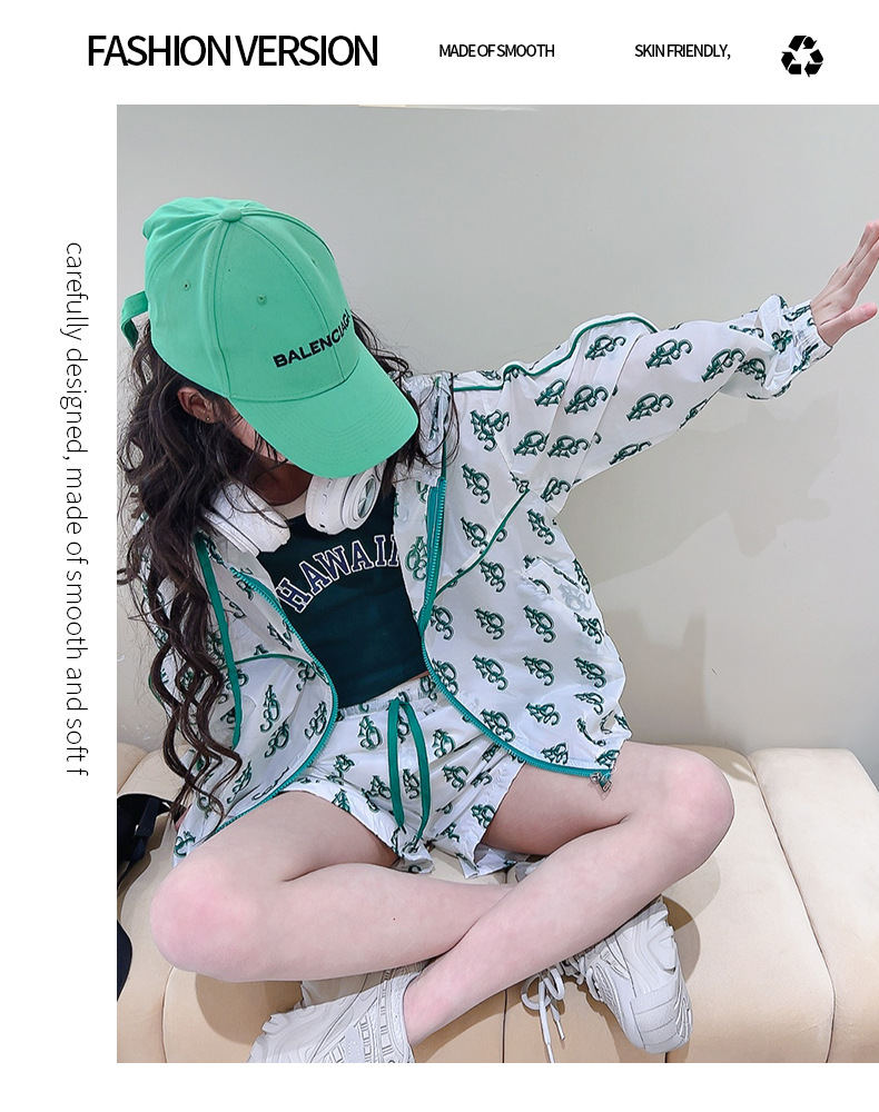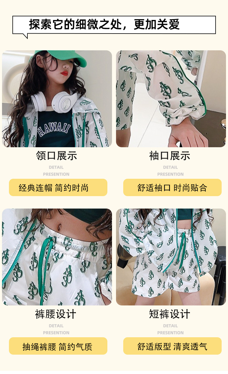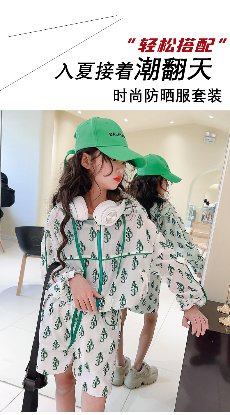 소녀 선 스크린 의류 세트 얇은 스포츠 선 스크린 의류 2024 유행 한국 스타일 중대형 어린이 의류 여름 서양식 세트
