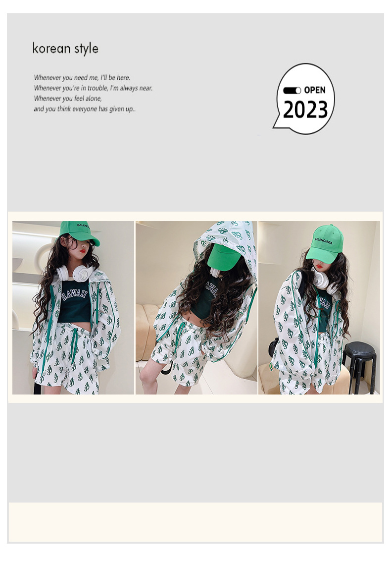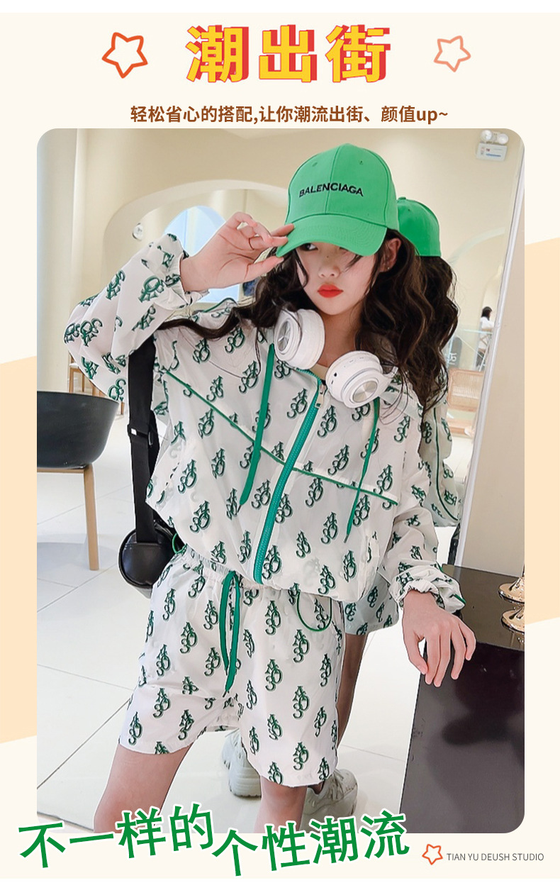 소녀 선 스크린 의류 세트 얇은 스포츠 선 스크린 의류 2024 유행 한국 스타일 중대형 어린이 의류 여름 서양식 세트스토어 가기