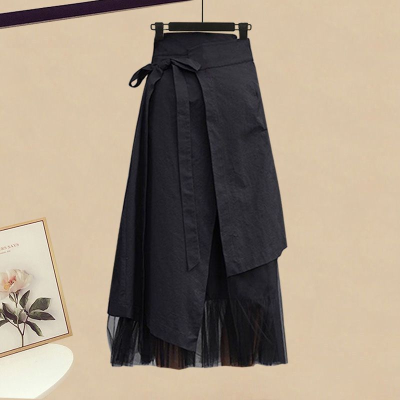 이른 봄은 여성 2024 새로운 스타일의 불규칙한 탑 세트를 입고 치마 디자인 느낌 투피스 세트