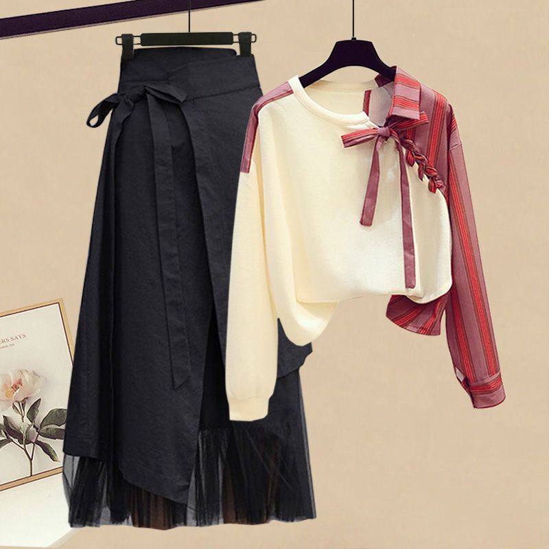 이른 봄은 여성 2024 새로운 스타일의 불규칙한 탑 세트를 입고 치마 디자인 느낌 투피스 세트스토어 가기