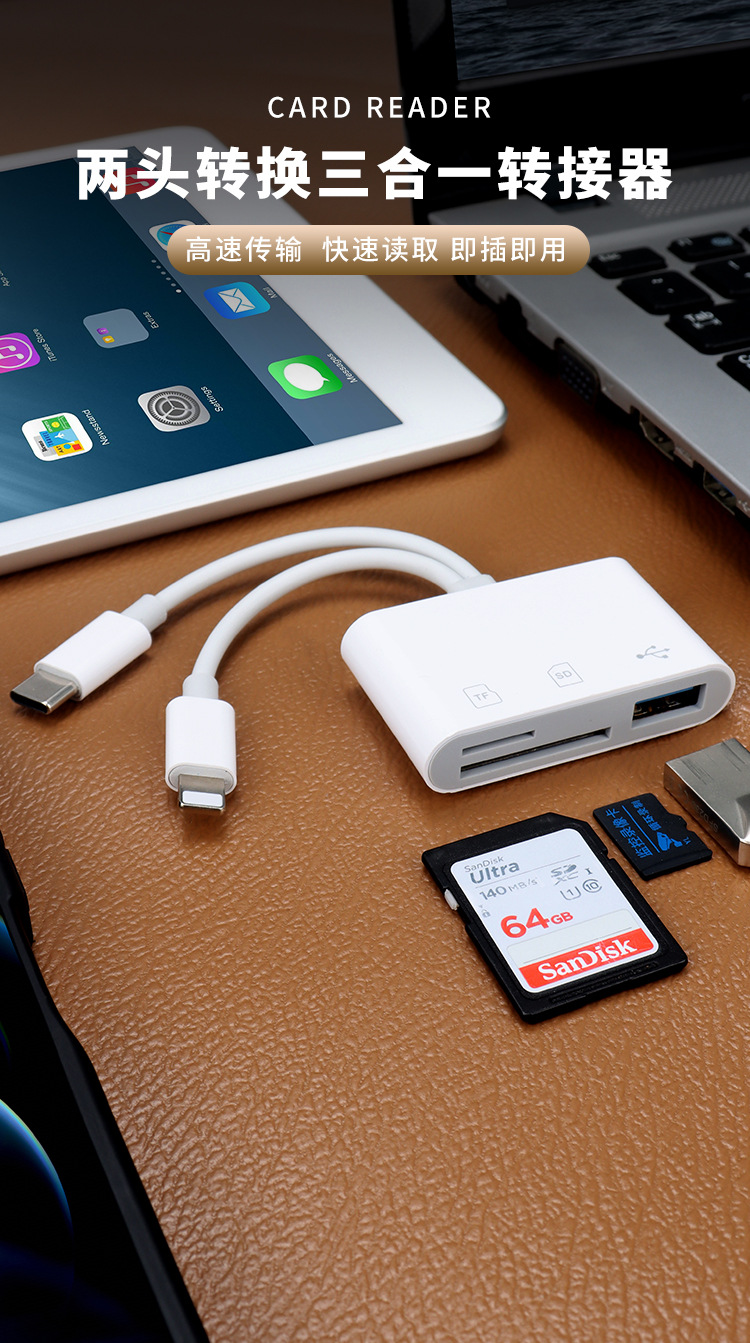 多合一 读卡器 sd卡 读卡器三合一 适用苹果17 16 15 14 13 12 11