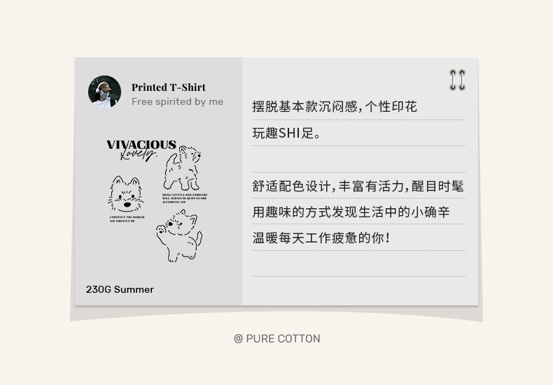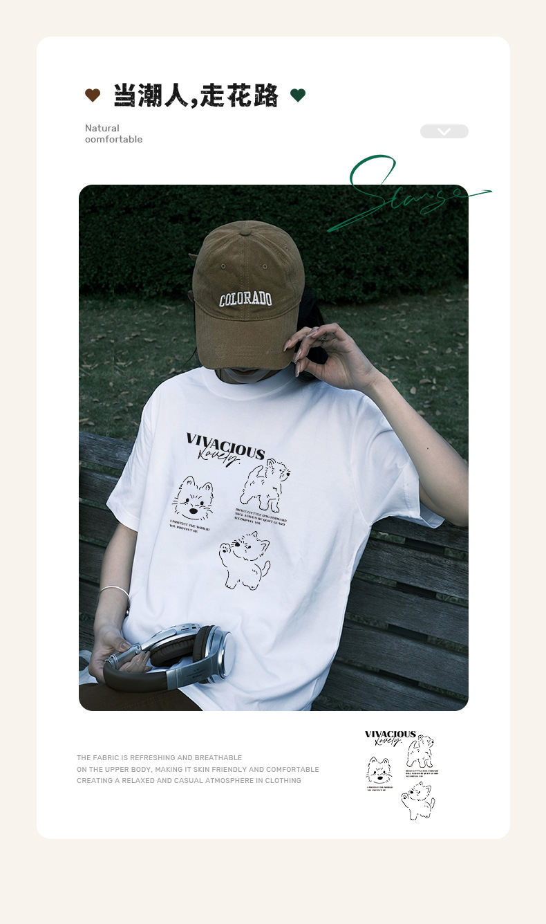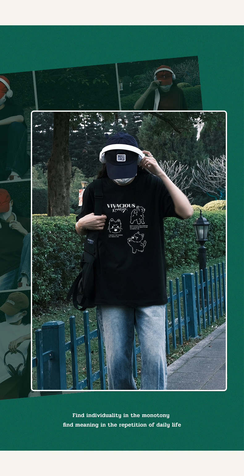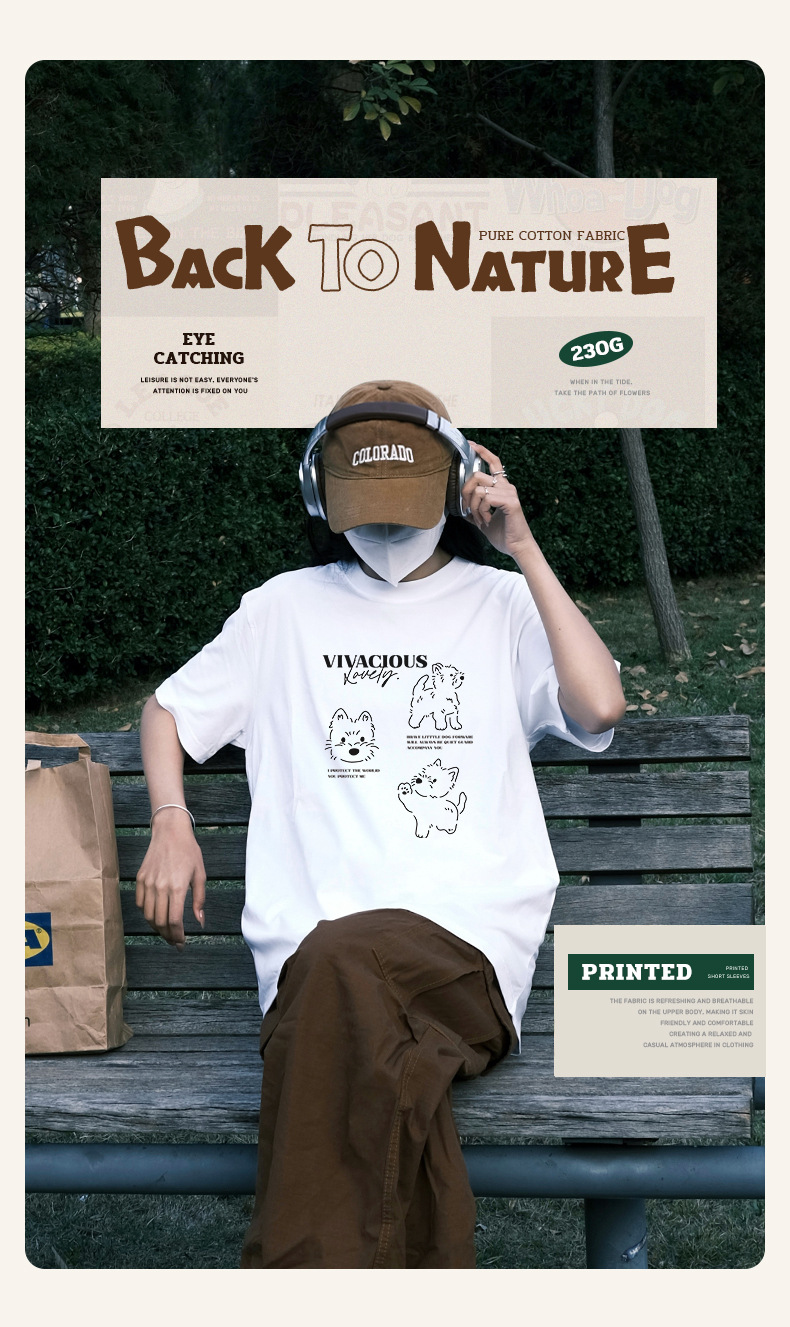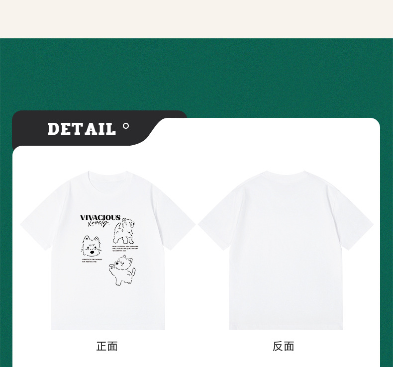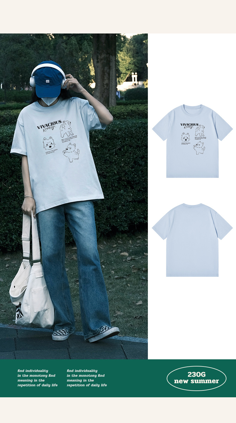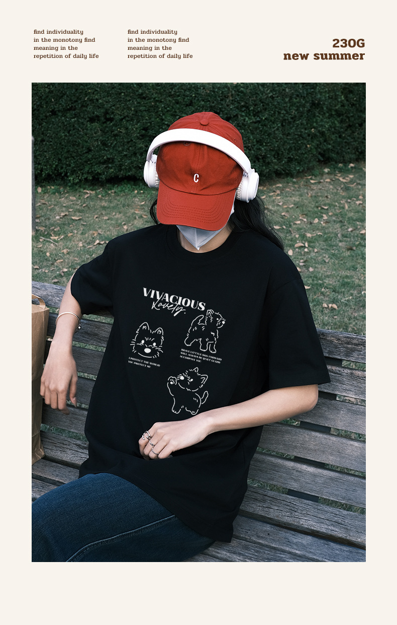 빗질 면화 230g 강아지 인쇄 짧은 소매 여성 티셔츠 여름 새로운 틈새 재미 간단한 느슨한 흰색 t