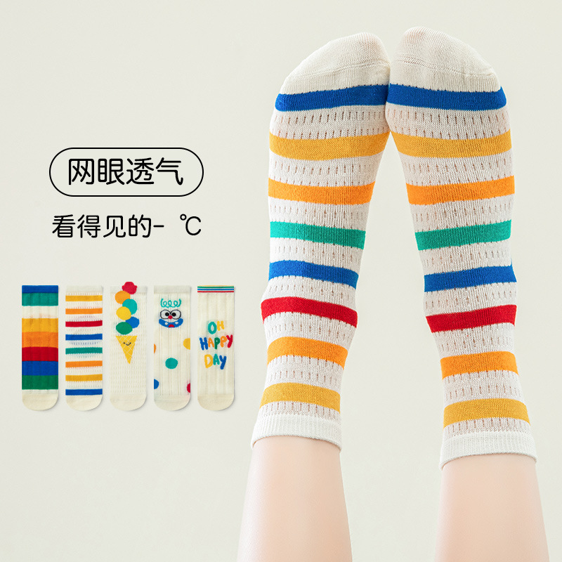 어린이 양말 여름 얇은 뼈없는 얼음 실크 튜브 양말 소년과 소녀 아기 여름 무지개 통기성 메쉬 양말