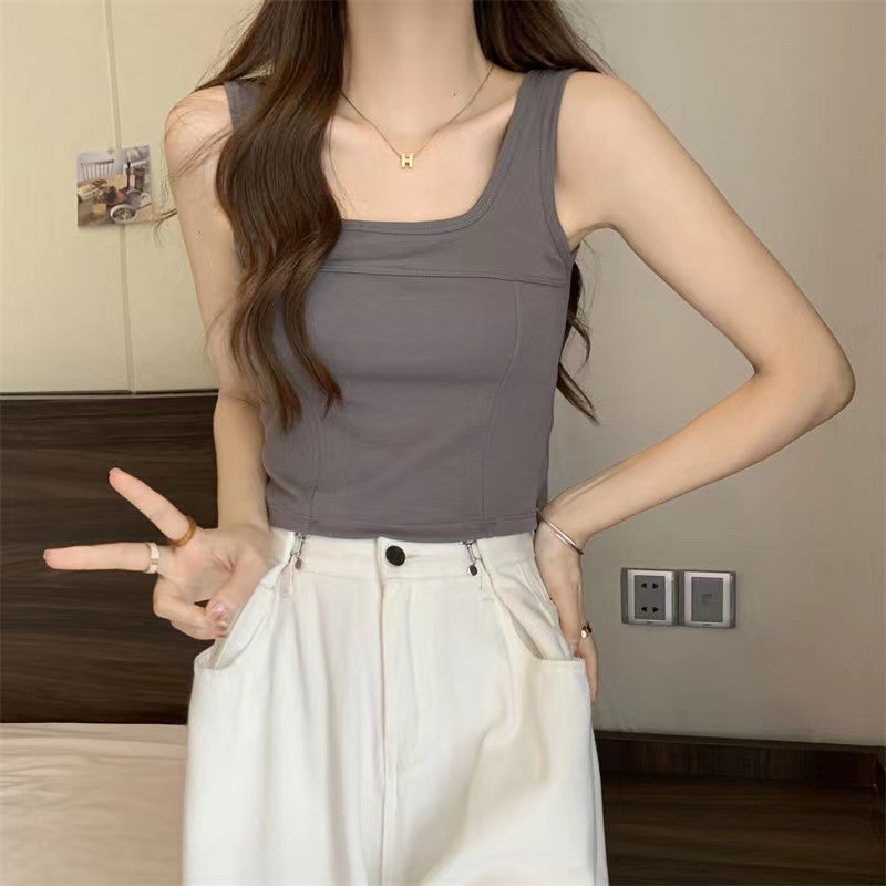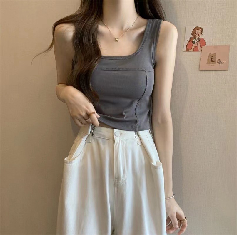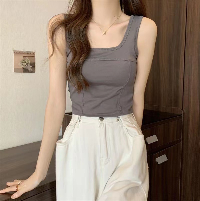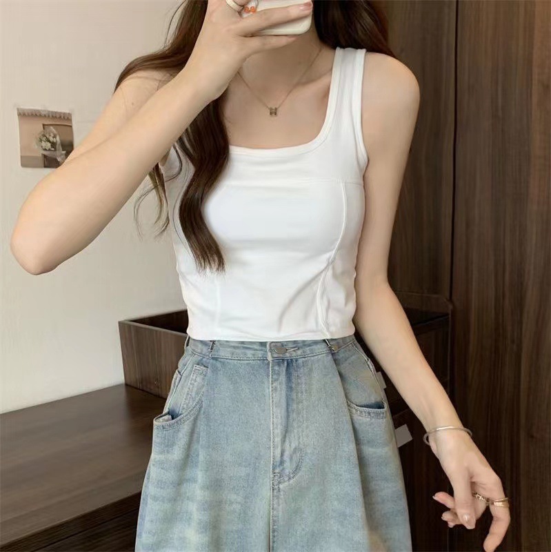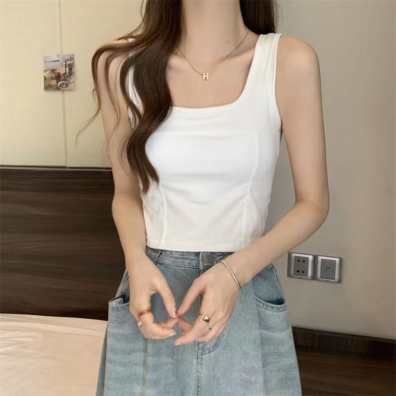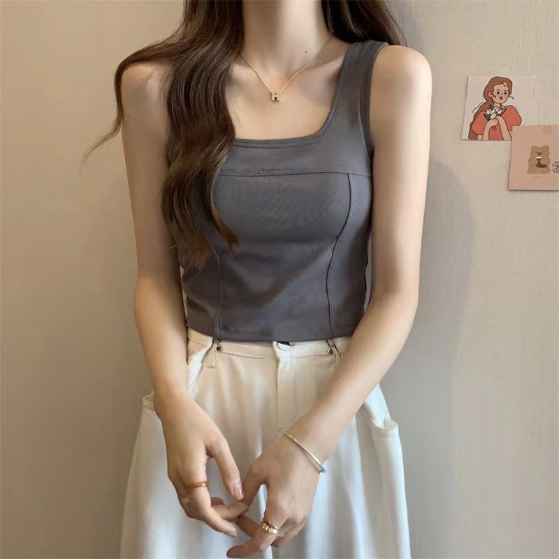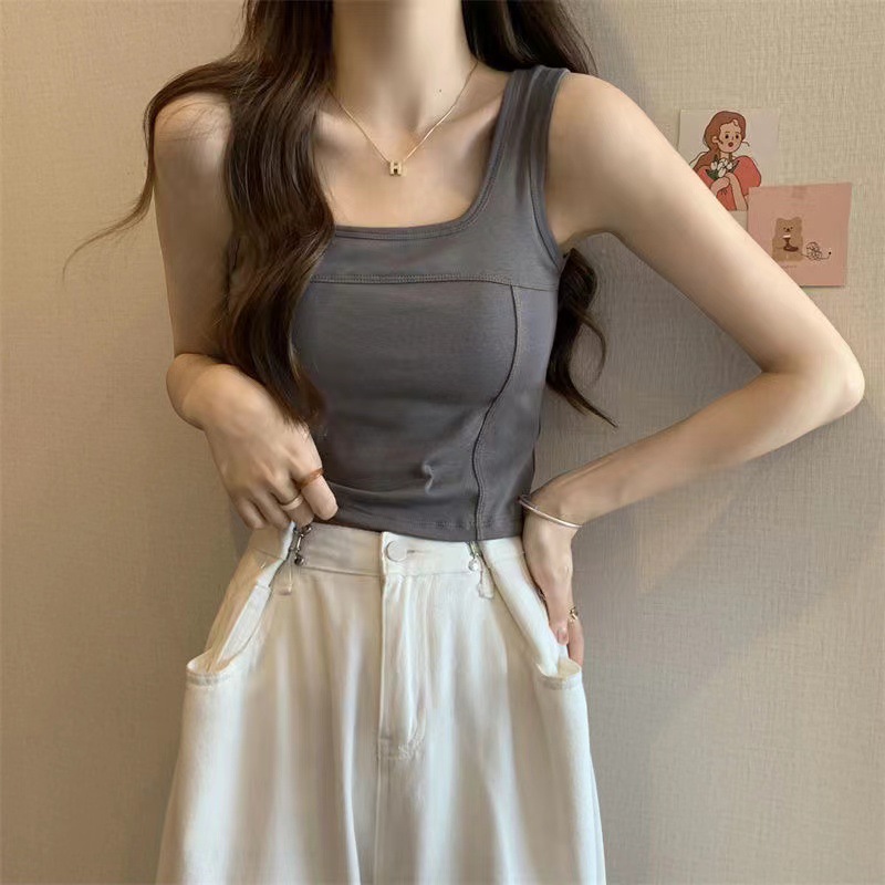2024 흉부 패드가 달린 폭발성 조끼 여성용 아우터웨어 슬림핏 벨리 커버 내복 스트랩리스 아름 다운 백 민소매 한국 스타일스토어 가기
