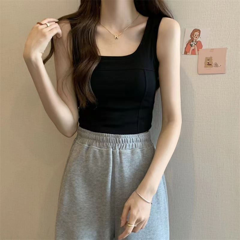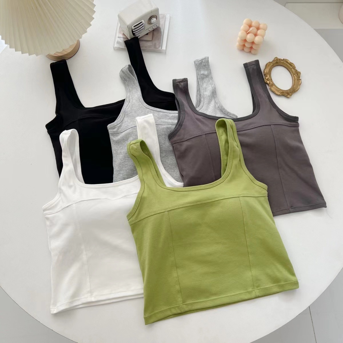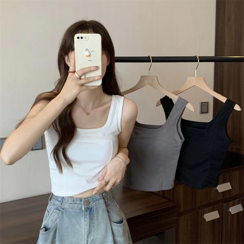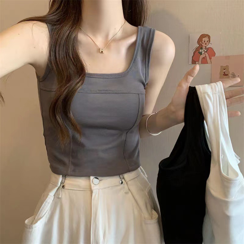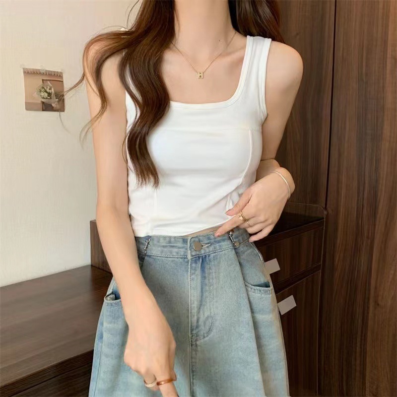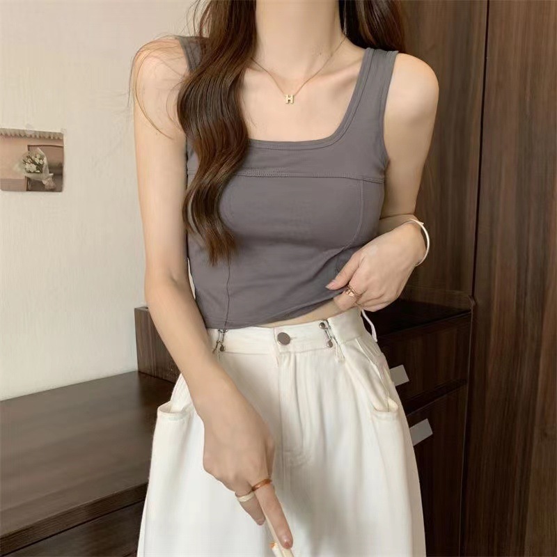 2024 흉부 패드가 달린 폭발성 조끼 여성용 아우터웨어 슬림핏 벨리 커버 내복 스트랩리스 아름 다운 백 민소매 한국 스타일스토어 가기