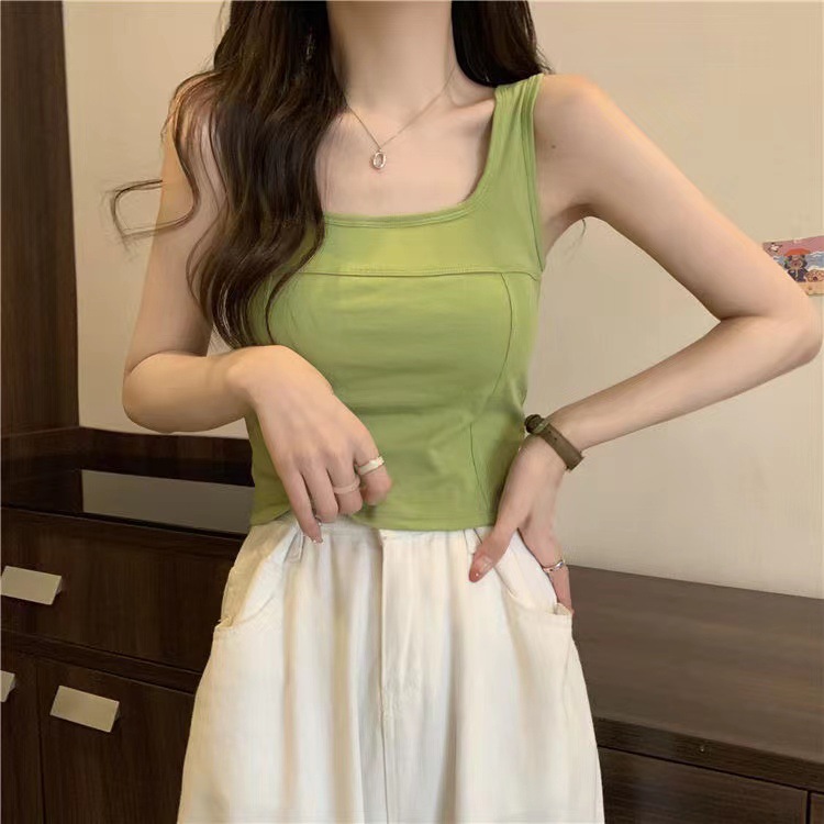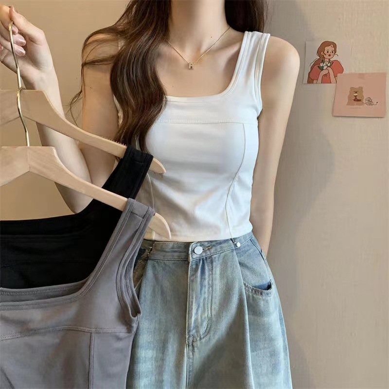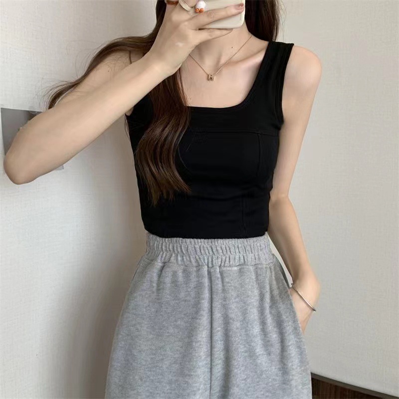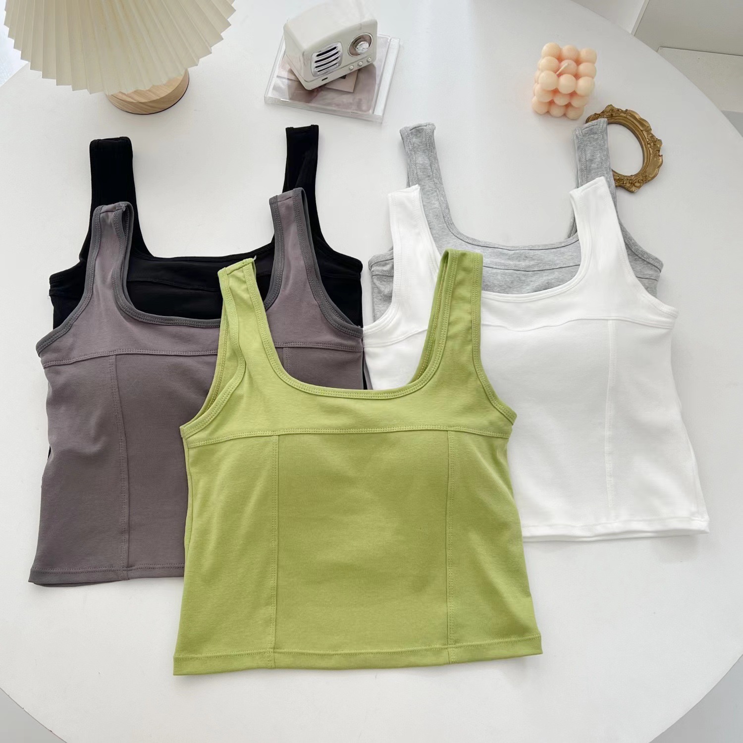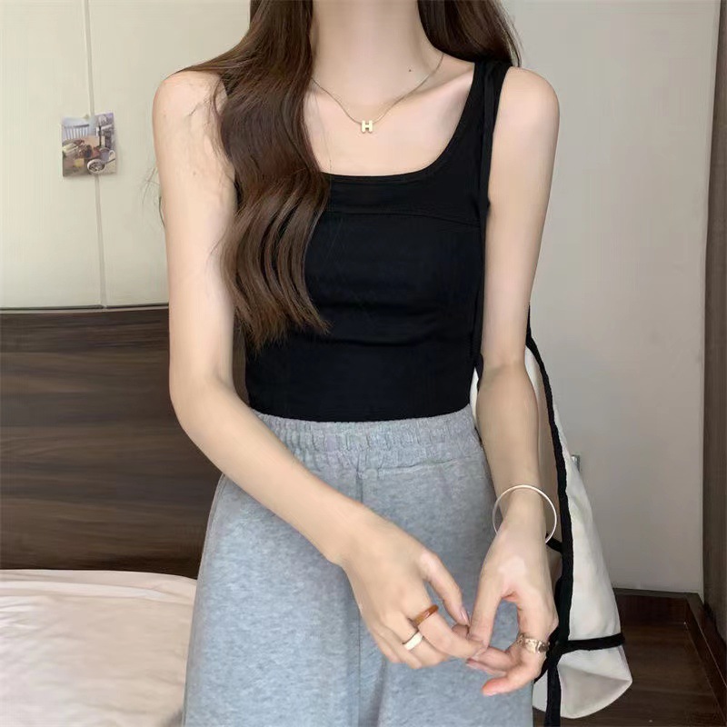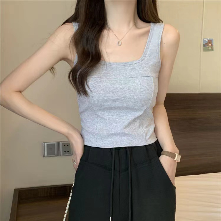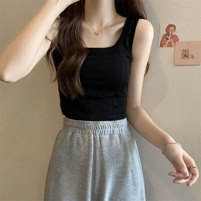 2024 흉부 패드가 달린 폭발성 조끼 여성용 아우터웨어 슬림핏 벨리 커버 내복 스트랩리스 아름 다운 백 민소매 한국 스타일스토어 가기