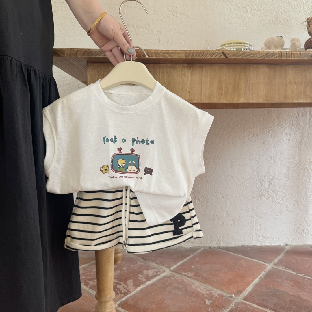 2024 새로운 아동 의류 반팔 티셔츠 여름 얇은 섹션 소년과 소녀를위한 귀여운 반팔 만화 탑스토어 가기