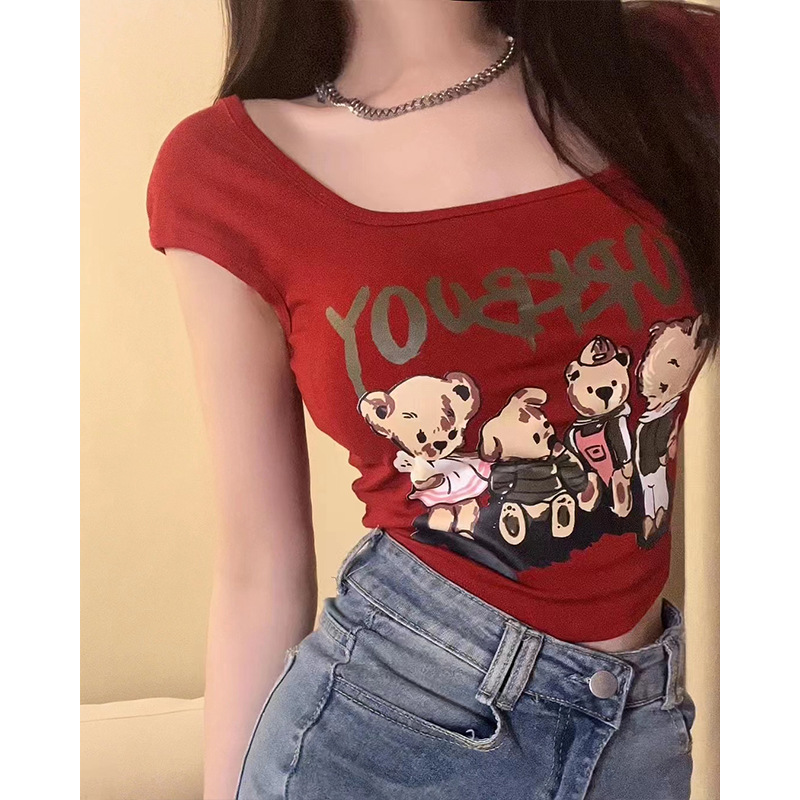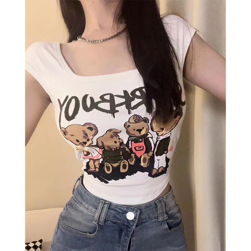 달콤한 향신료 곰 만화 가슴 패드와 함께 아름다운 뒷 조끼 인쇄 가슴 싸인 흉부 백리스 빈 짧은 외부 착용베이스 탑스토어 가기