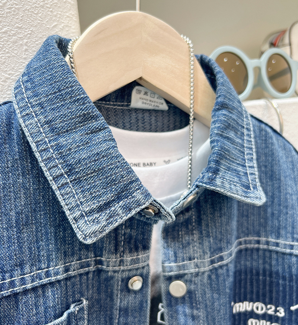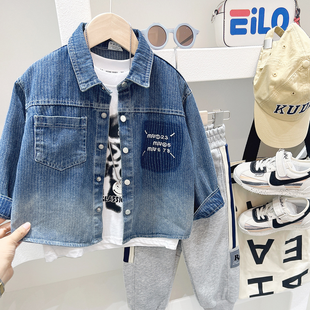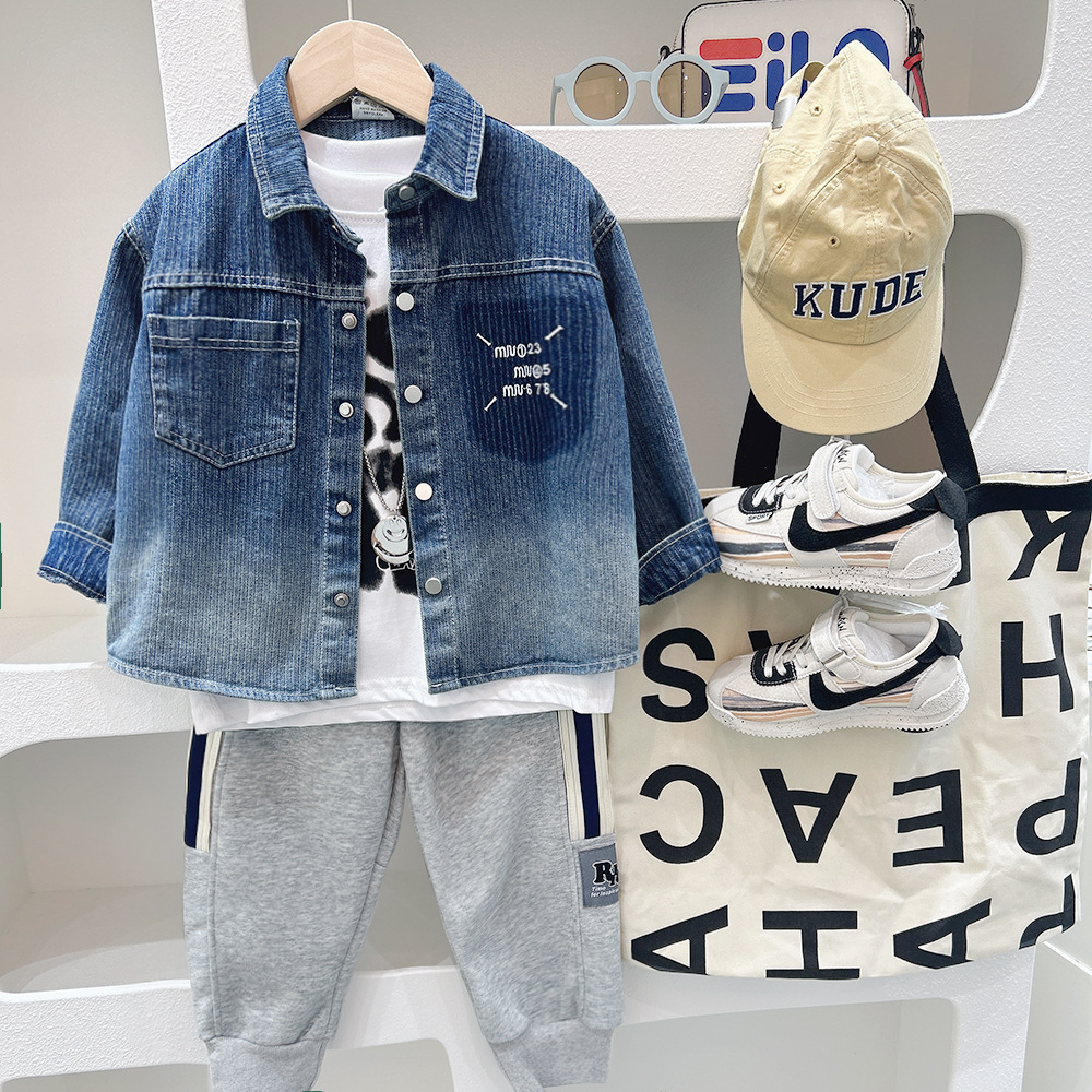 소년 데님 재킷 2024 가을 큰 어린이 작품 셔츠 데님 재킷 레트로 셔츠 루즈 트렌디스토어 가기
