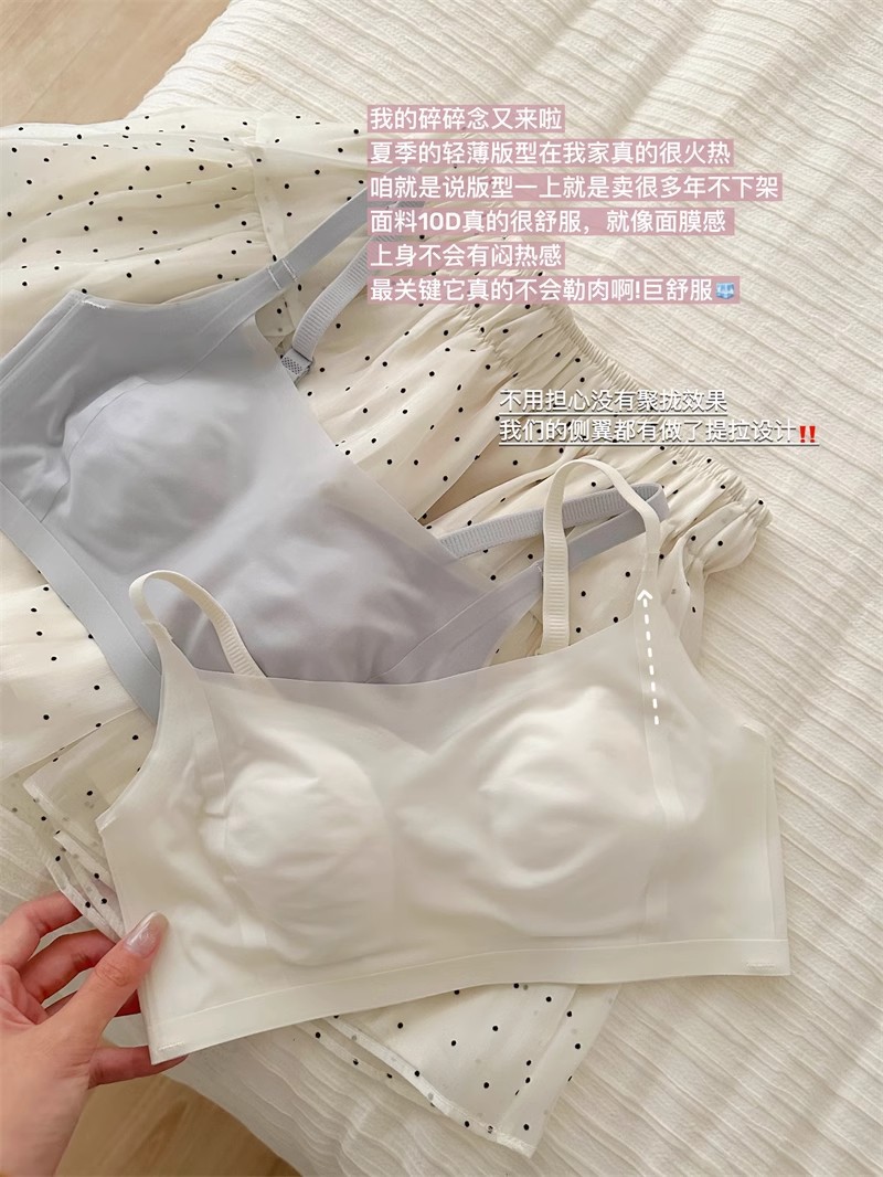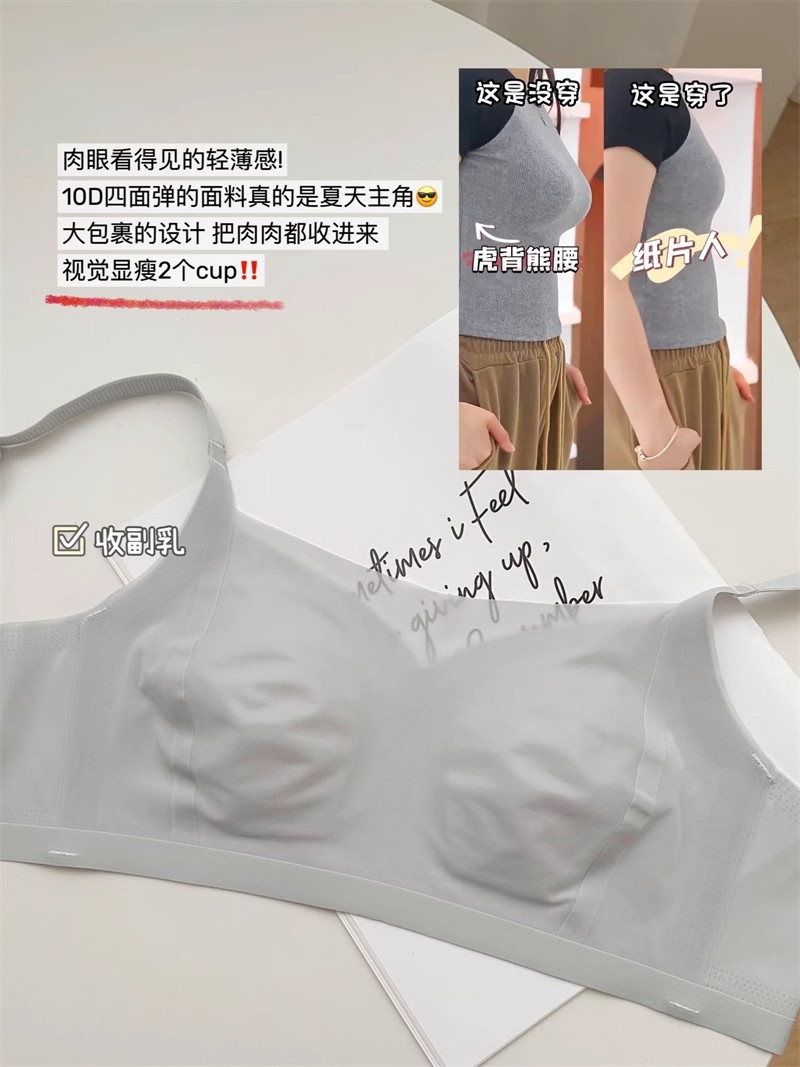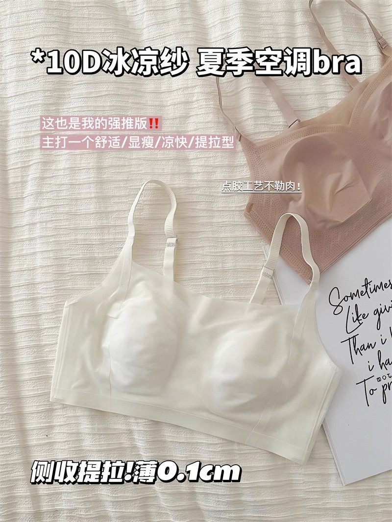 얼음이 느껴지는 속옷 여성의 얇은 대형 가슴 작은 여름 초박형 연약한 리프팅 추적 토끼 귀 브래지어