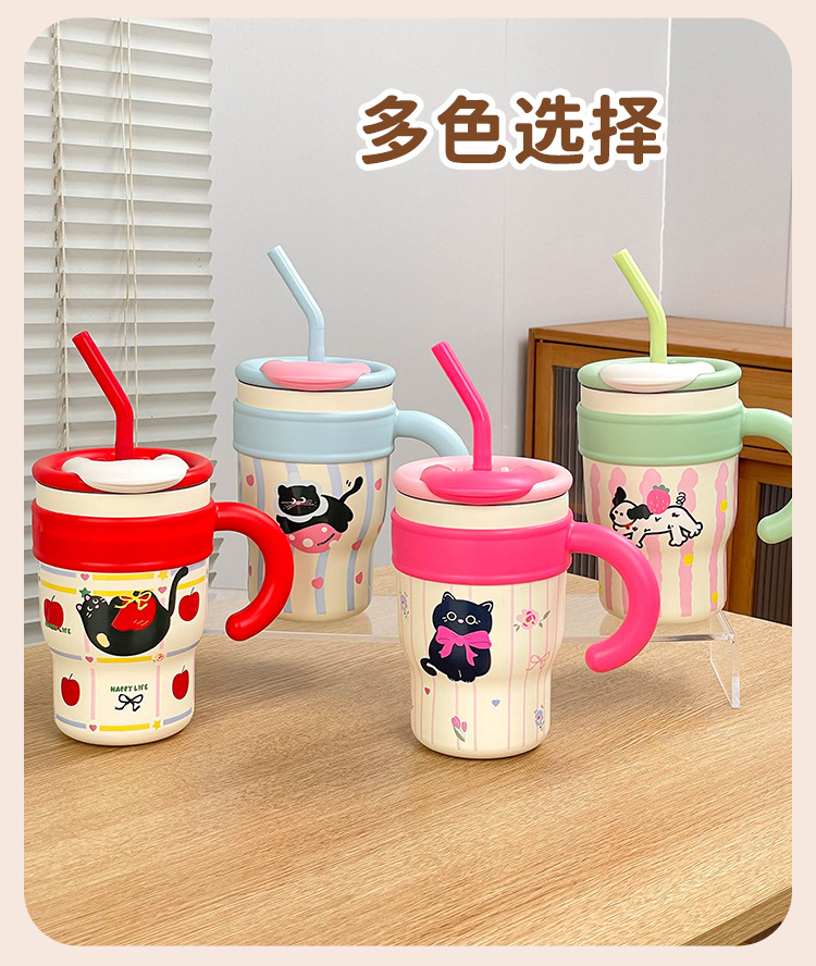 대용량 빨대 보온컵 여성용 2025 신형 사무실 보냉컵 고급스러운 디자인
