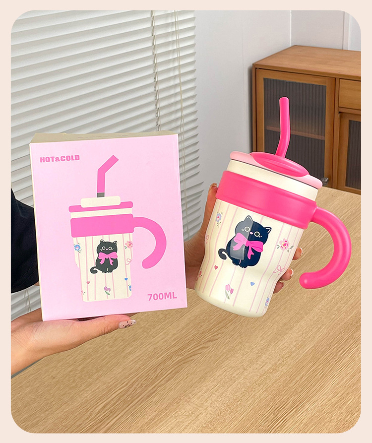 대용량 빨대 보온컵 여성용 2025 신형 사무실 보냉컵 고급스러운 디자인스토어 가기