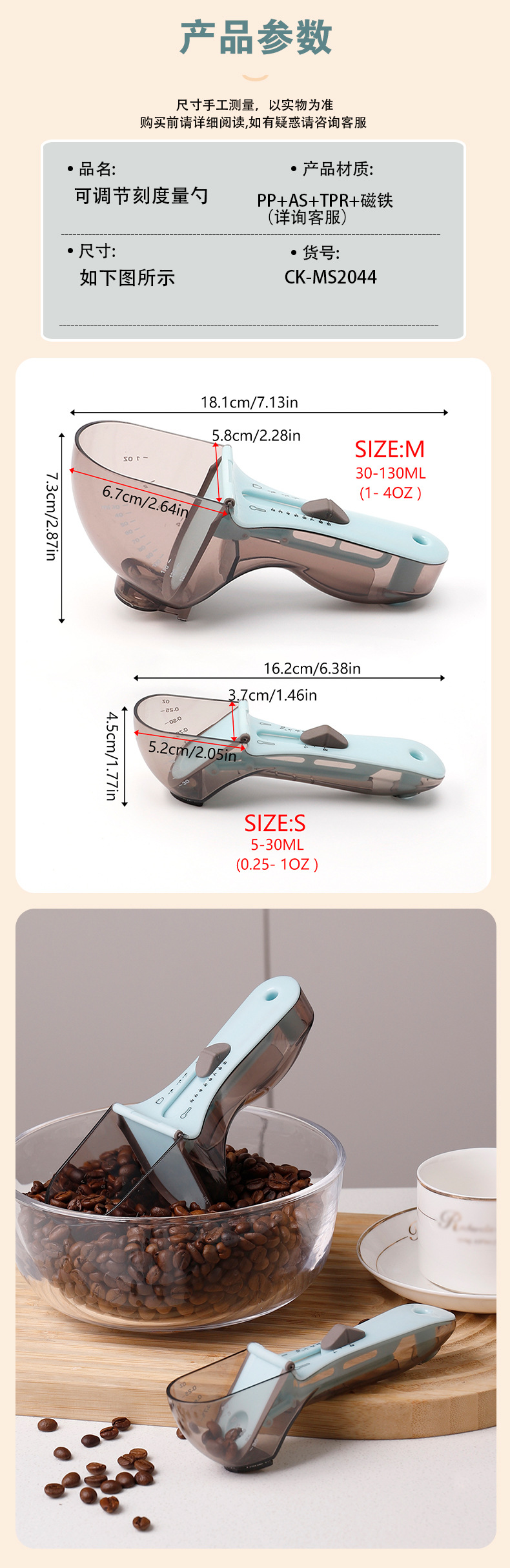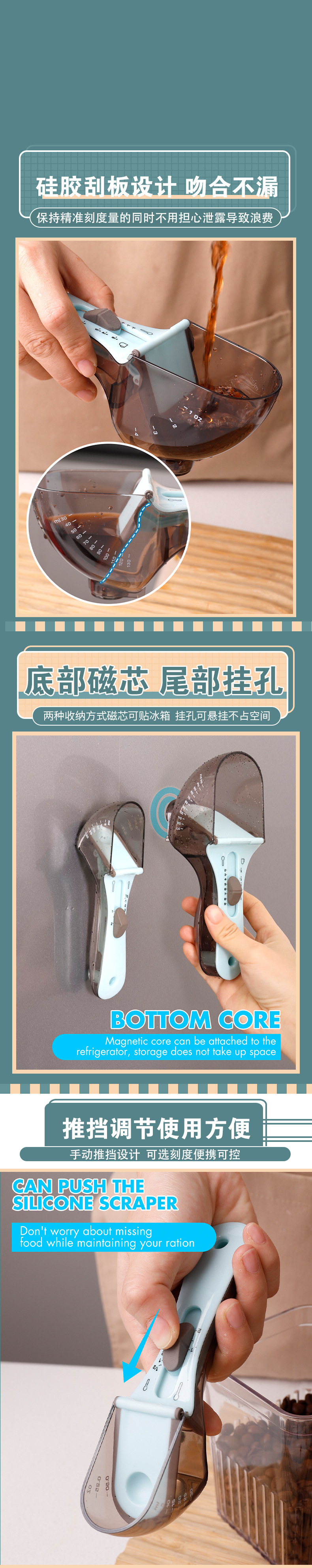 공장 조정 가능한 측정 숟가락 베이킹 플라스틱 가늠자 측정 숟가락 양념 분유 그램 측정 숟가락 측정 컵 자기 매력
