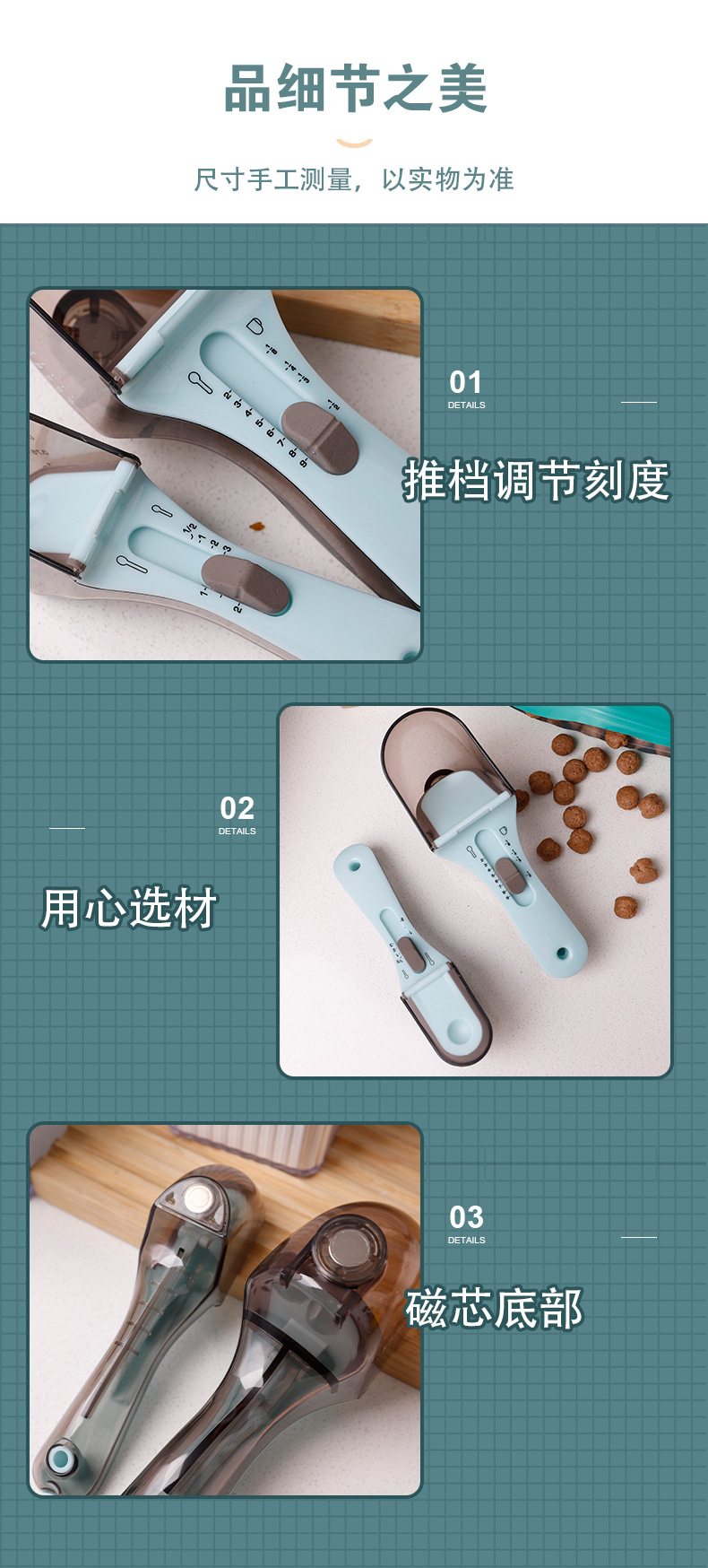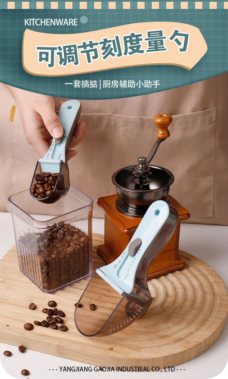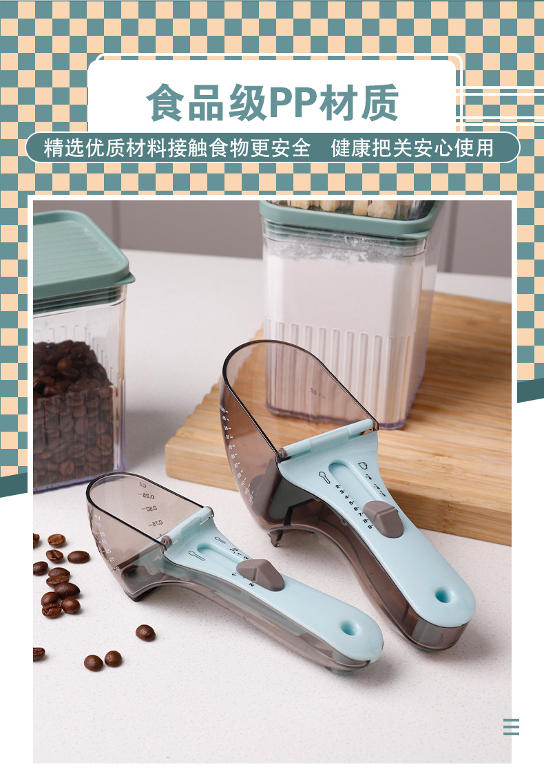 공장 조정 가능한 측정 숟가락 베이킹 플라스틱 가늠자 측정 숟가락 양념 분유 그램 측정 숟가락 측정 컵 자기 매력스토어 가기