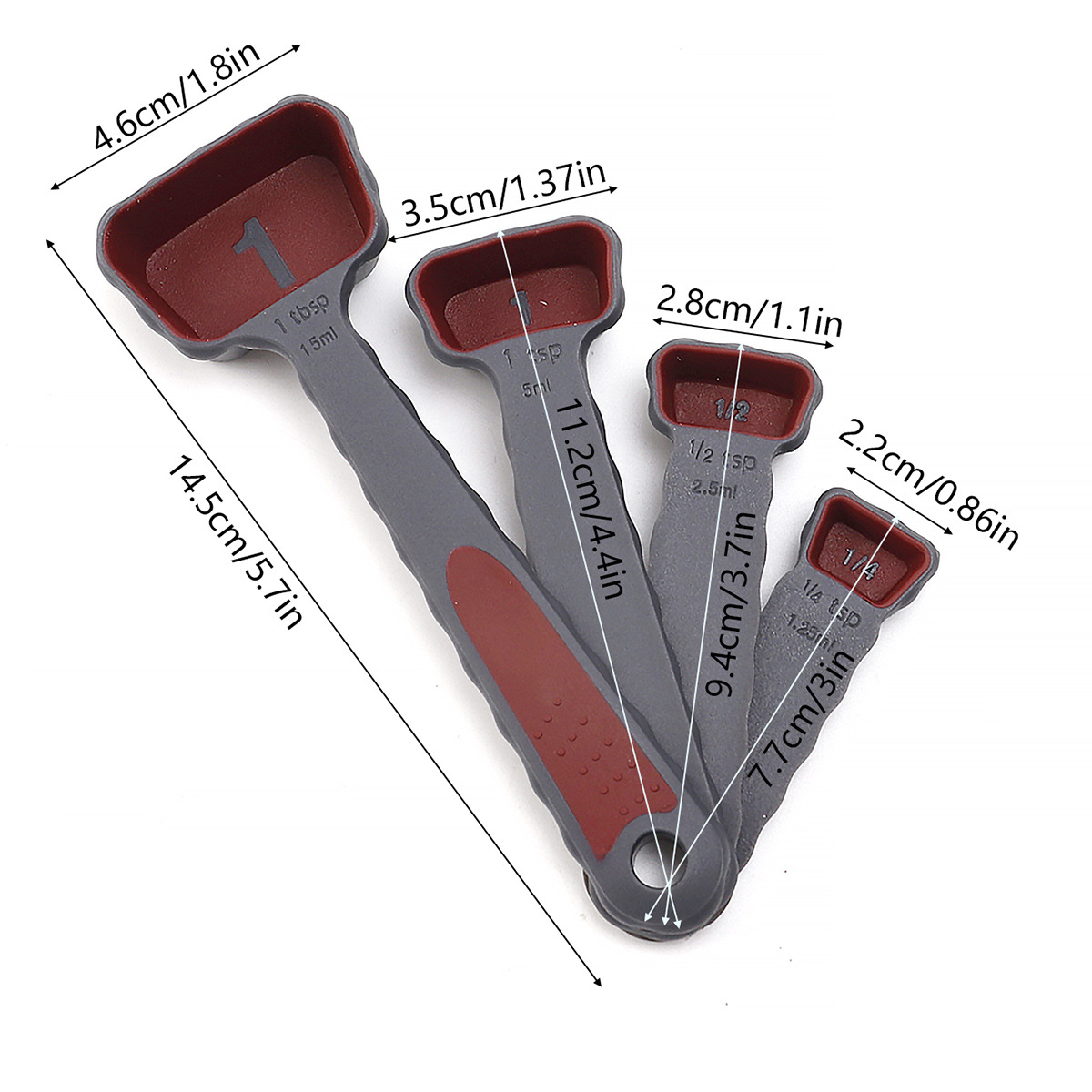 • 4 조각 사각형 측정 숟가락 (회색-빨간색)