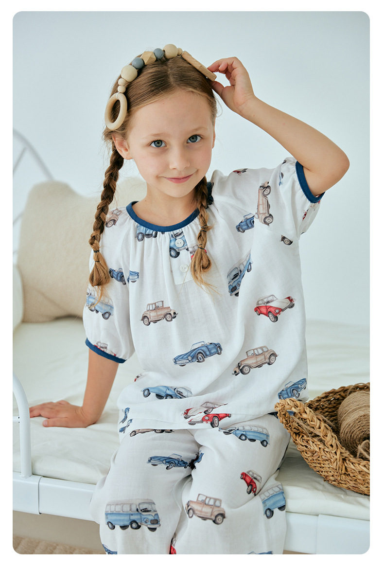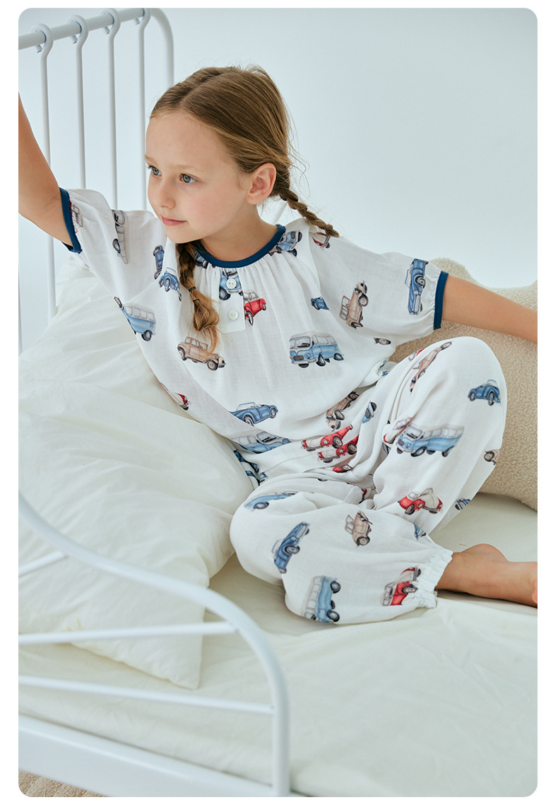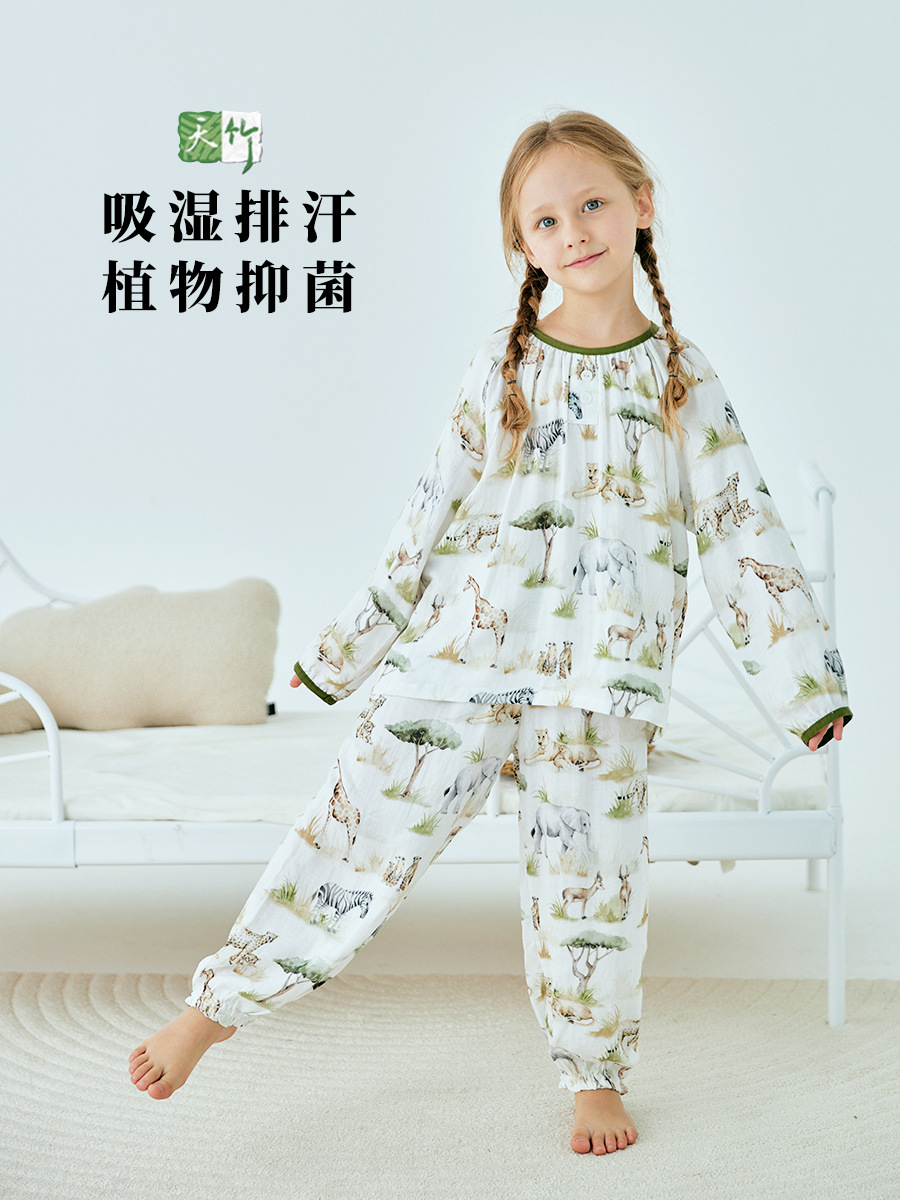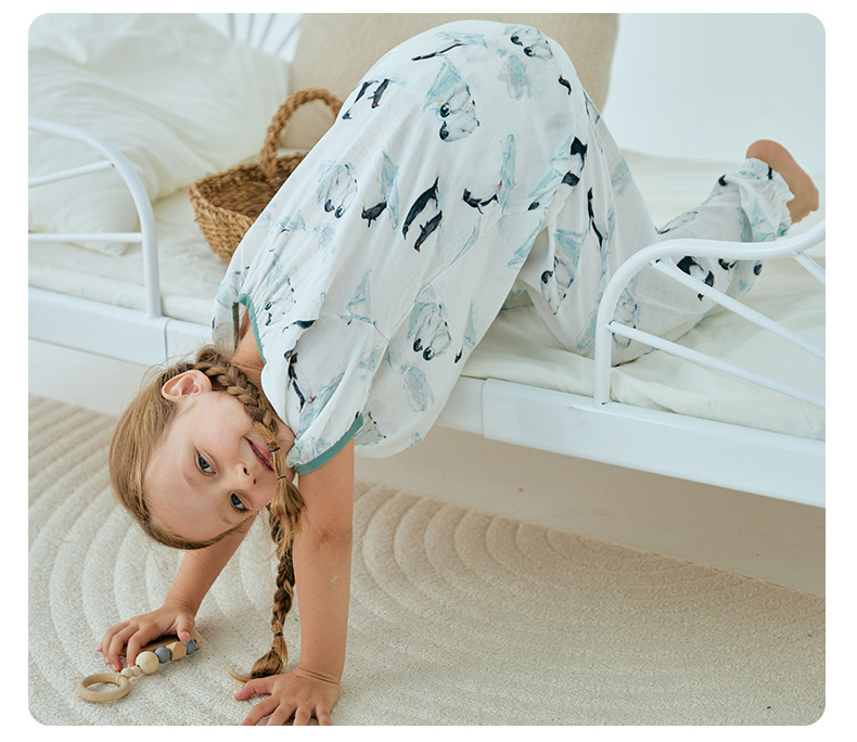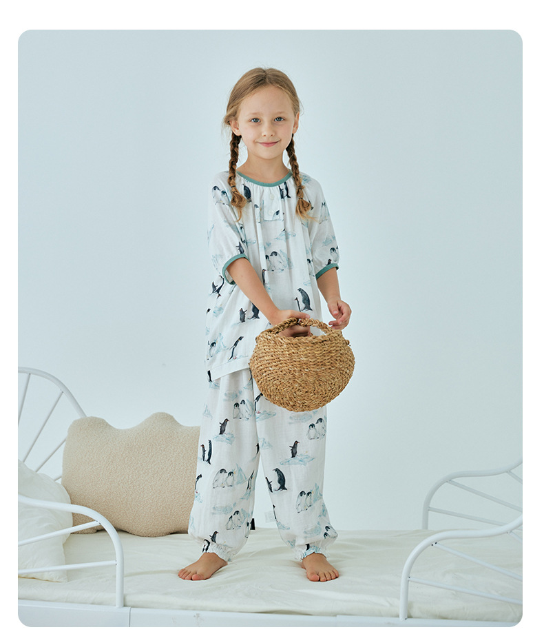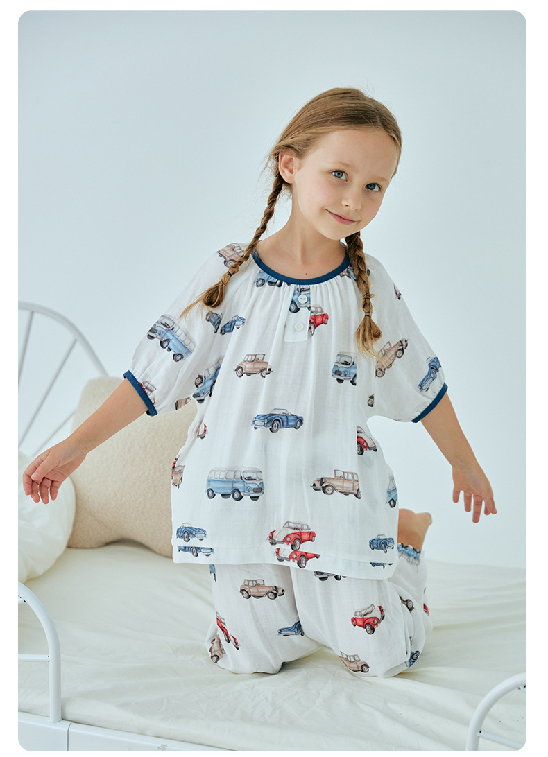 Xiazhu Cotton Gauze 유치원 통기성 에어컨 셔츠 소년의 모기 방지 바지 소녀 어린이 홈 의류 세트스토어 가기