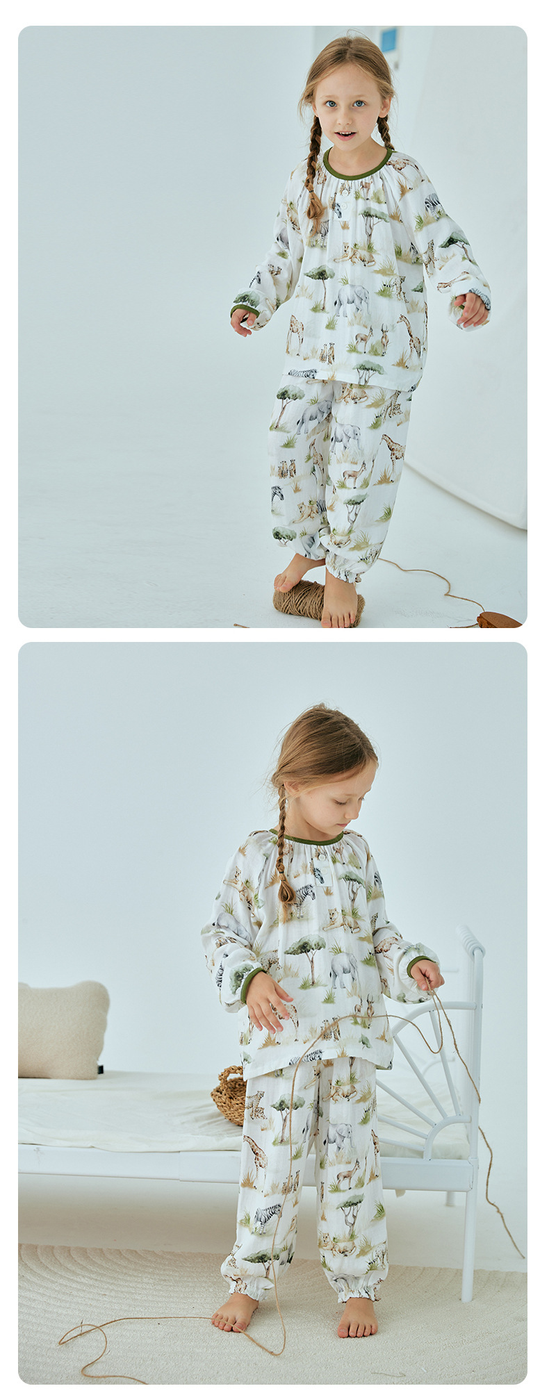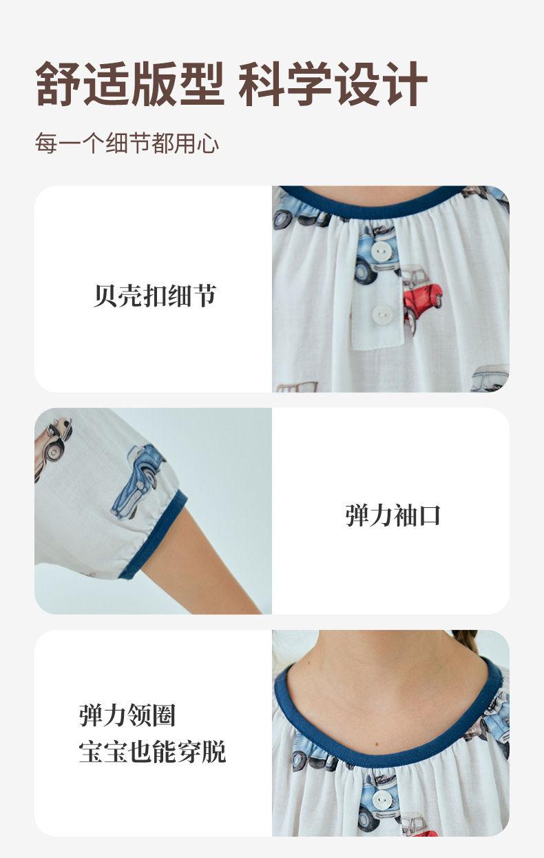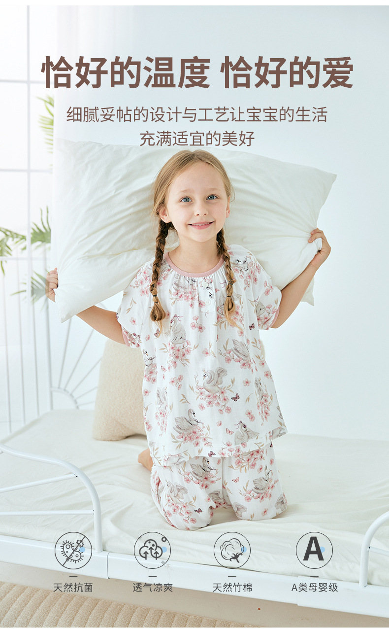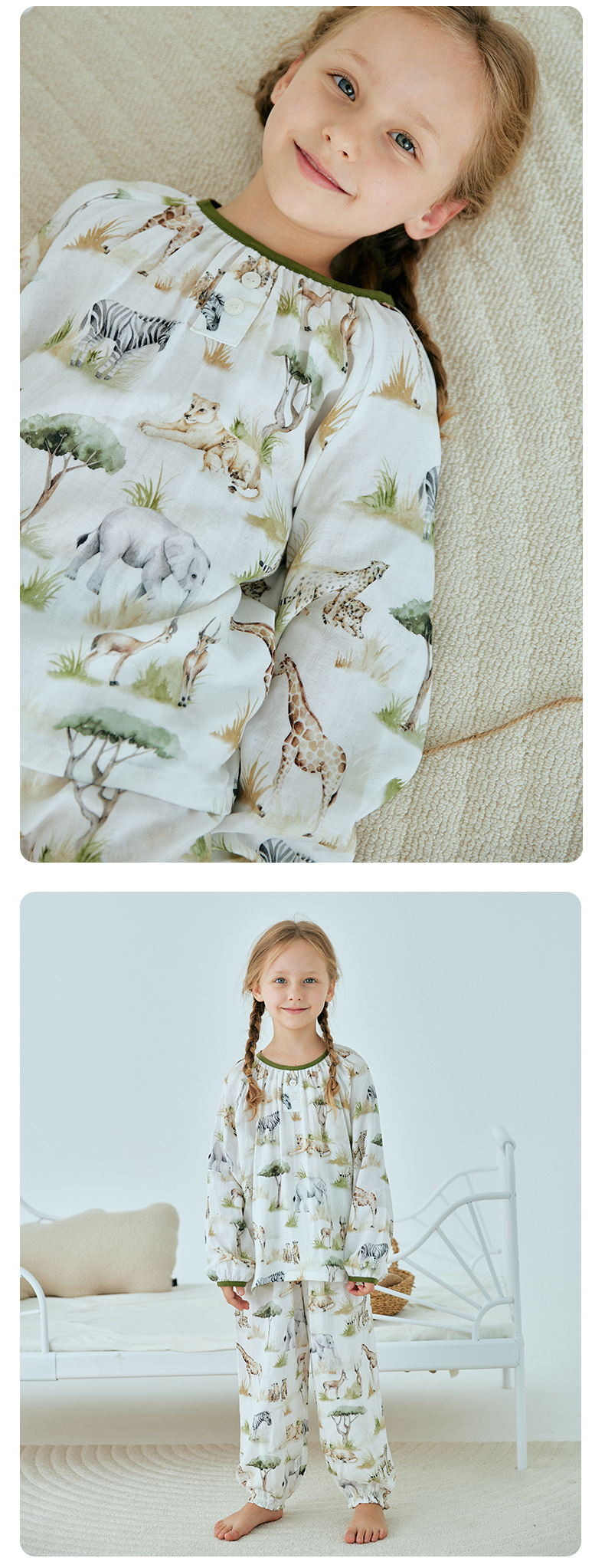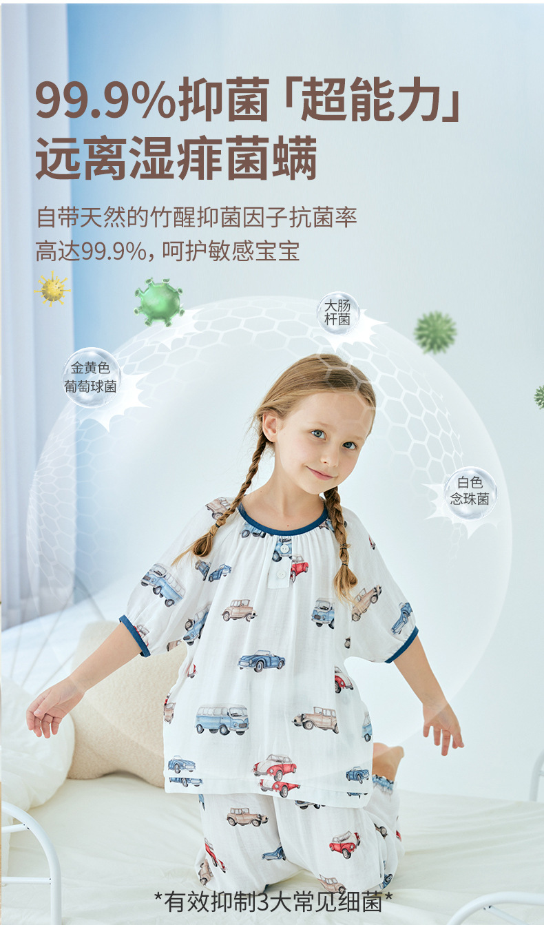 Xiazhu Cotton Gauze 유치원 통기성 에어컨 셔츠 소년의 모기 방지 바지 소녀 어린이 홈 의류 세트스토어 가기