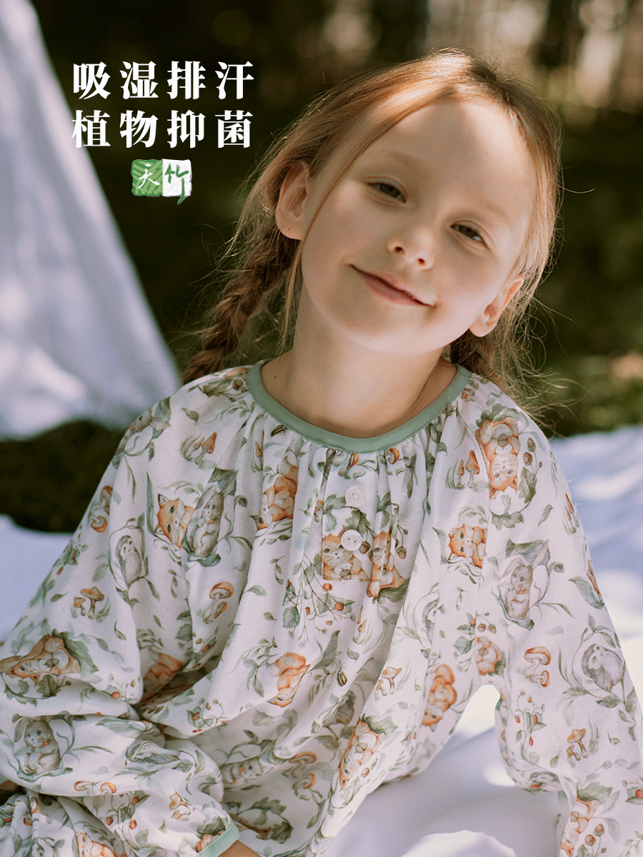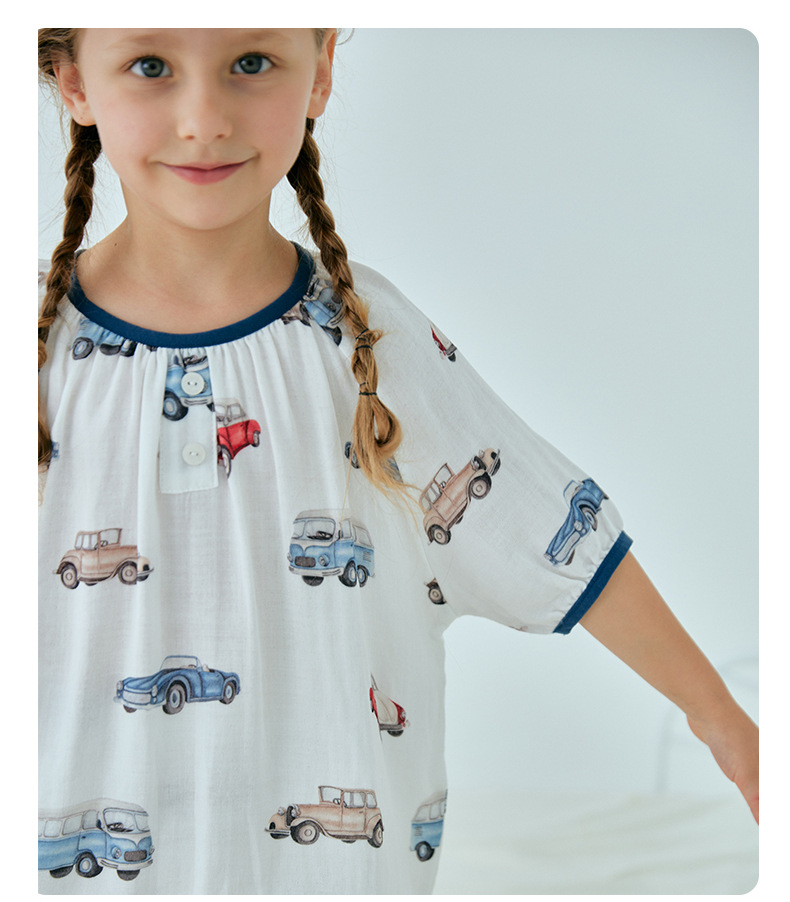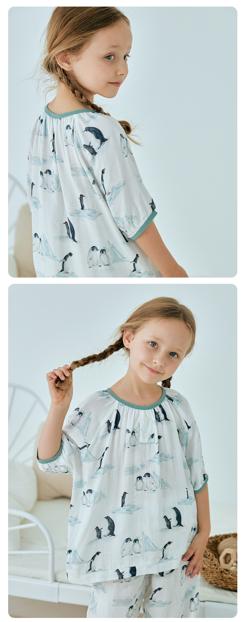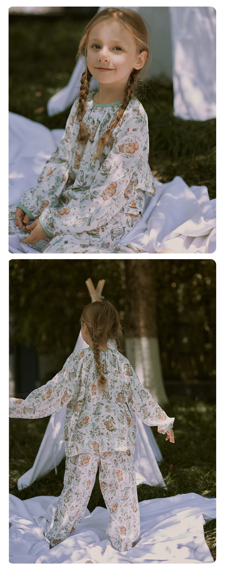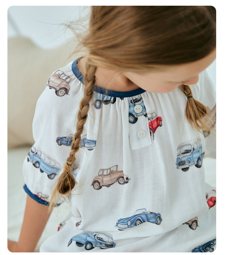 Xiazhu Cotton Gauze 유치원 통기성 에어컨 셔츠 소년의 모기 방지 바지 소녀 어린이 홈 의류 세트스토어 가기