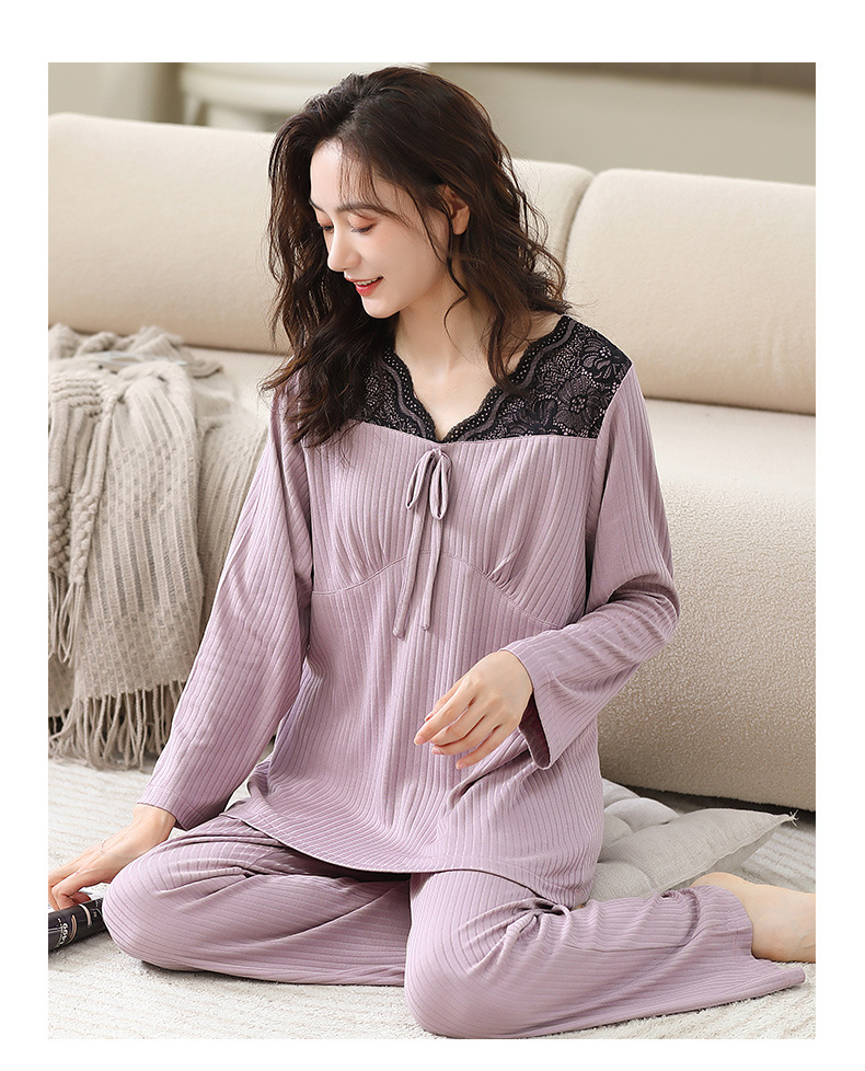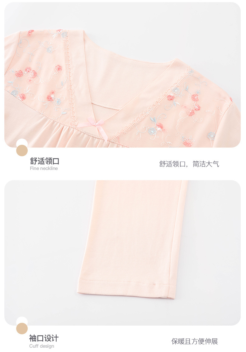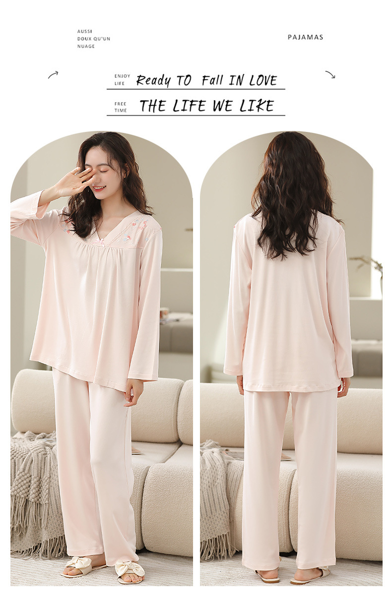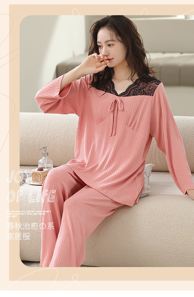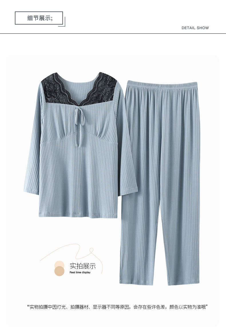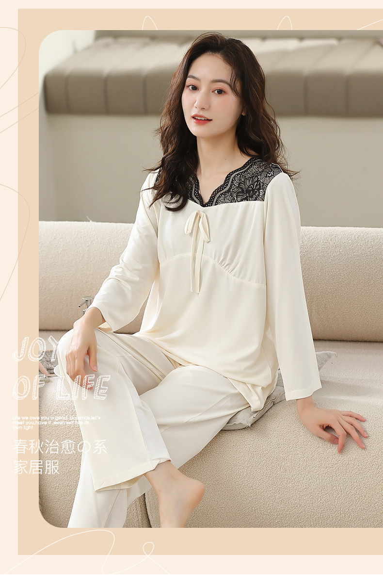 모달 파자마 여성의 가을 실크 긴팔 홈 옷 세트 느슨한 플러스 사이즈 어머니의 달 옷을 입고