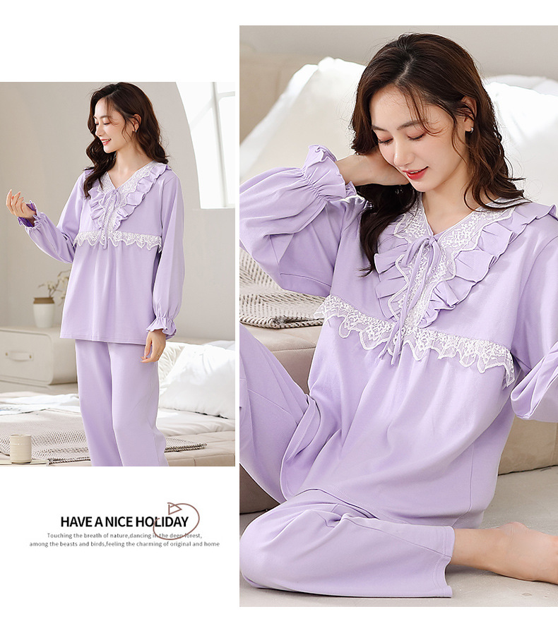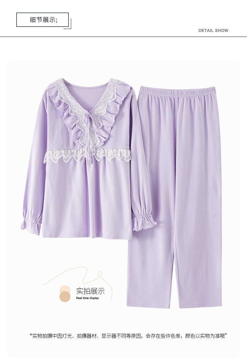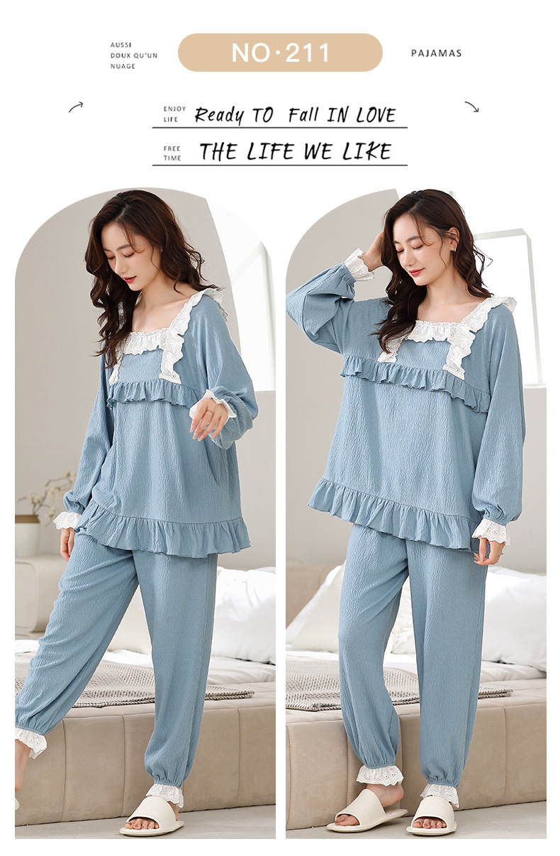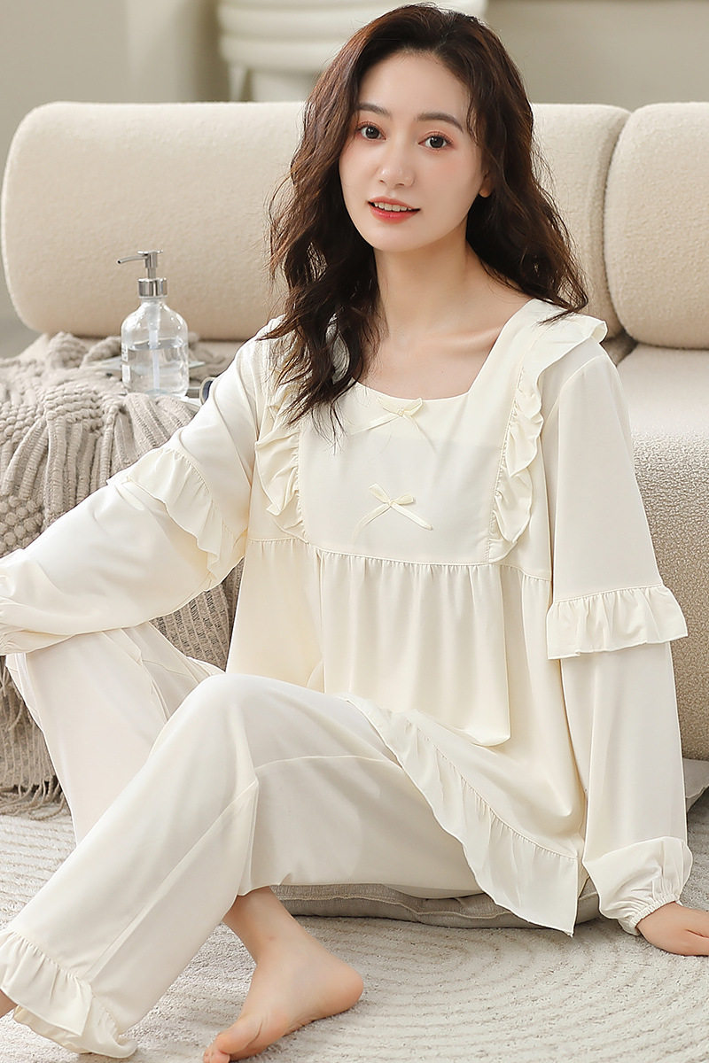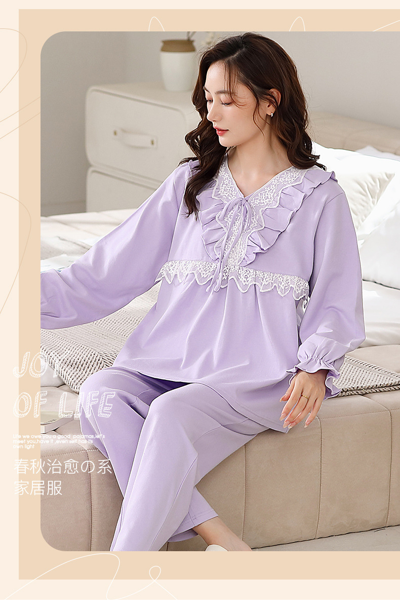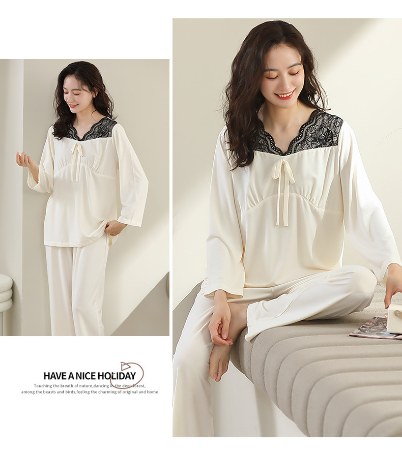 모달 파자마 여성의 가을 실크 긴팔 홈 옷 세트 느슨한 플러스 사이즈 어머니의 달 옷을 입고