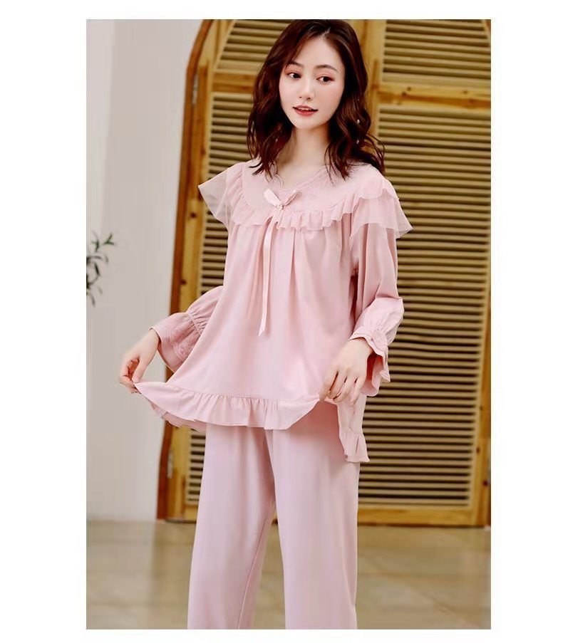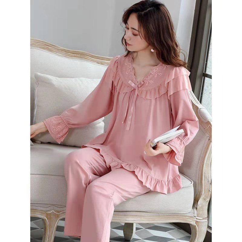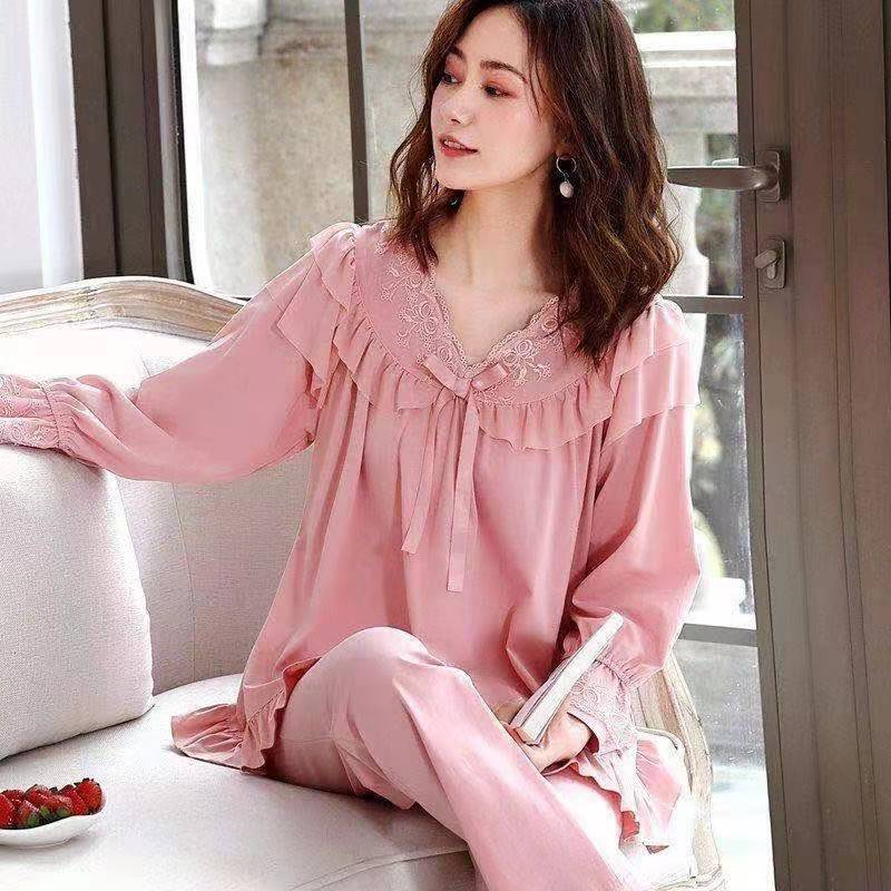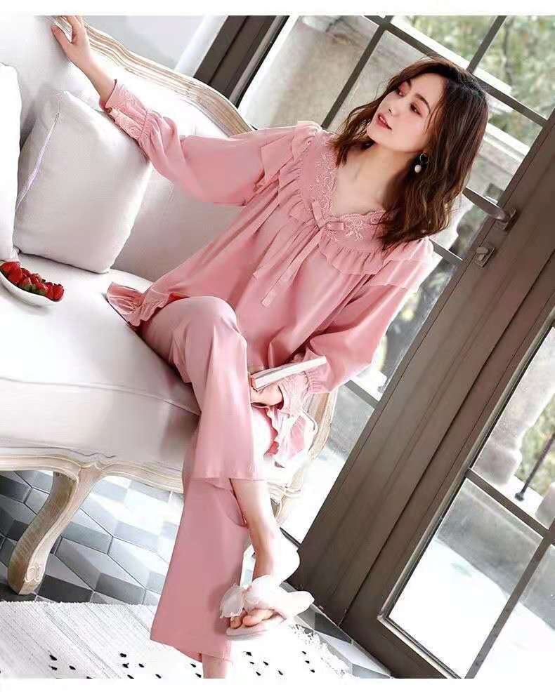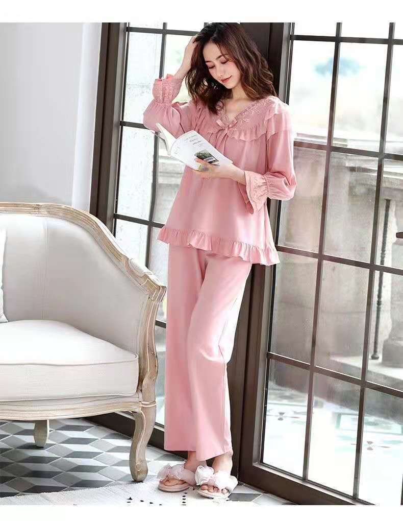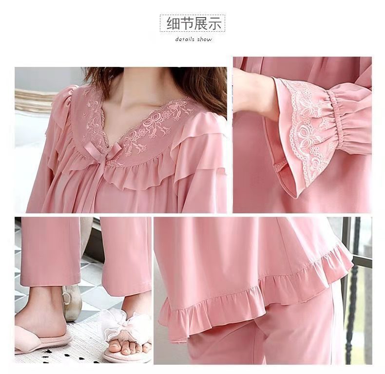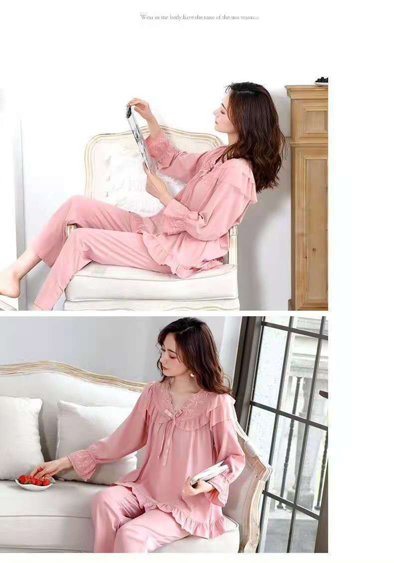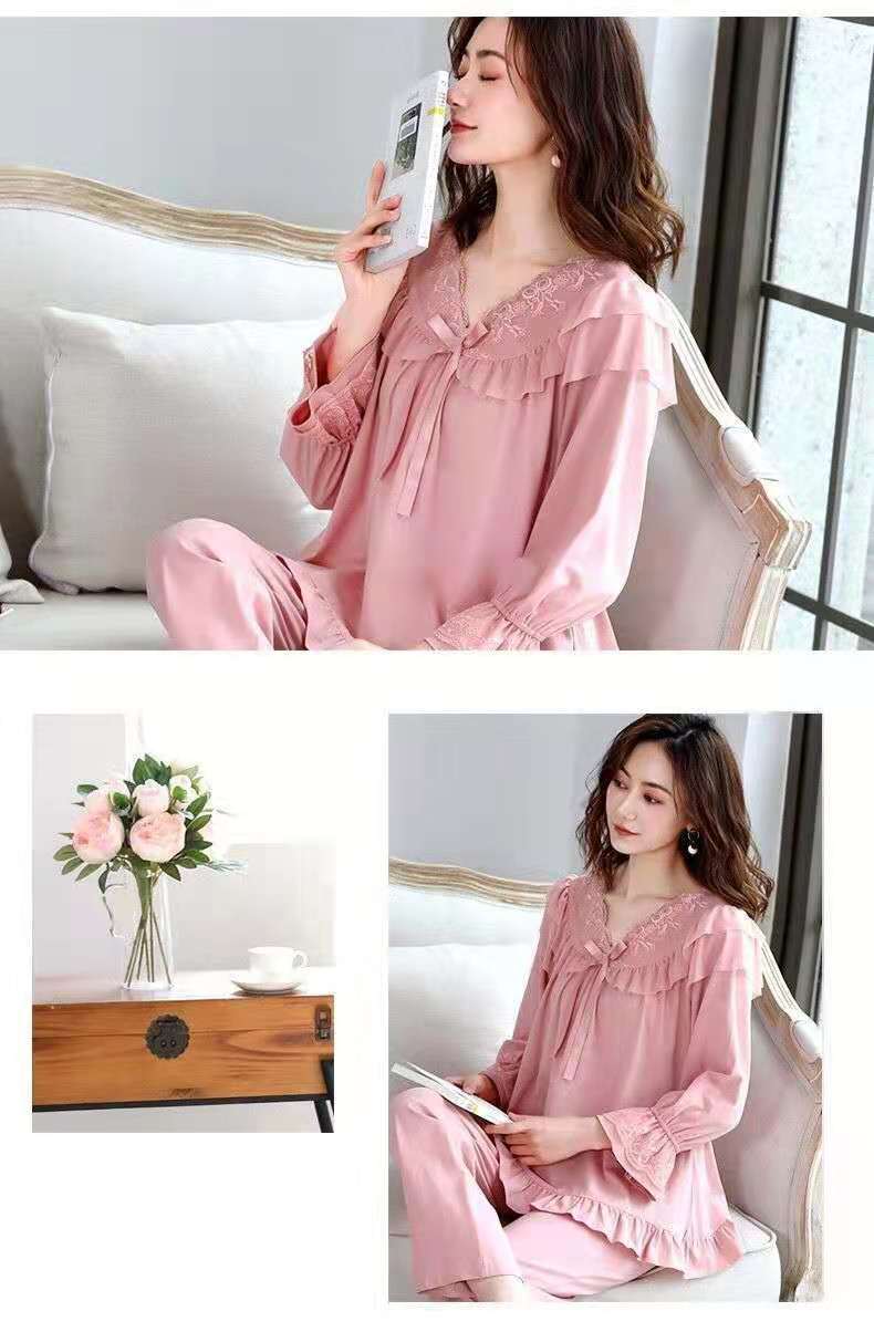 모달 파자마 여성의 가을 실크 긴팔 홈 옷 세트 느슨한 플러스 사이즈 어머니의 달 옷을 입고스토어 가기