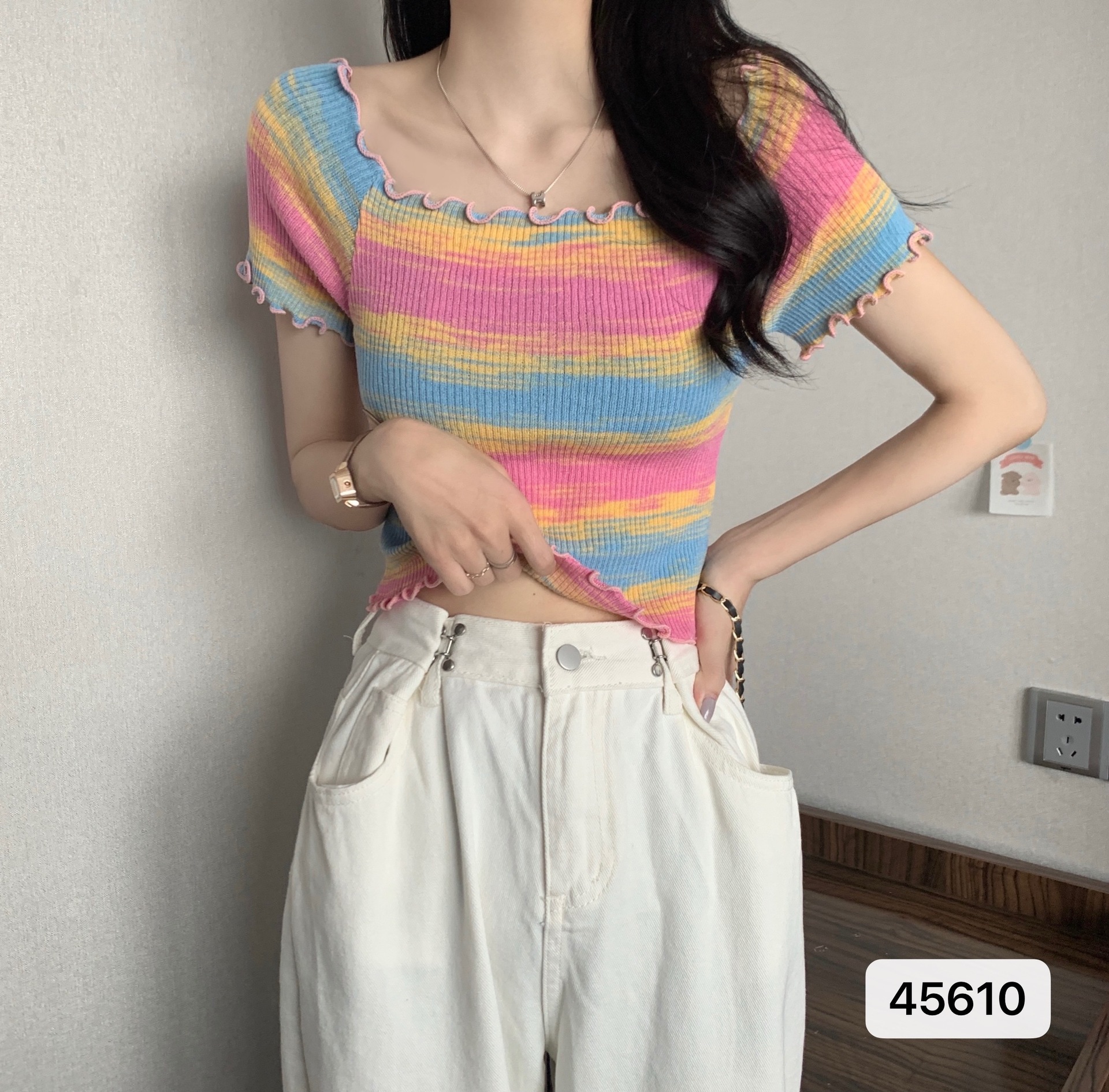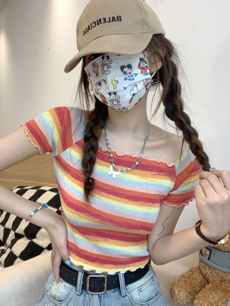 스파이스 소녀 짧은 어깨 나무-귀 가장자리 여름 세련된 내부 반팔 티셔츠 최고 여성베이스 셔츠 줄무늬 셔츠스토어 가기