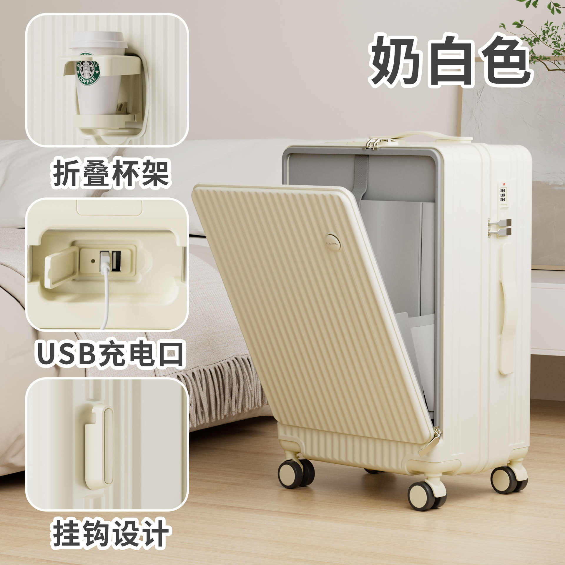 전면 개방 수하물 케이스 소스 공장 전면 개방 수하물 케이스 충전 수하물 케이스 워터 컵 홀더 가방스토어 가기