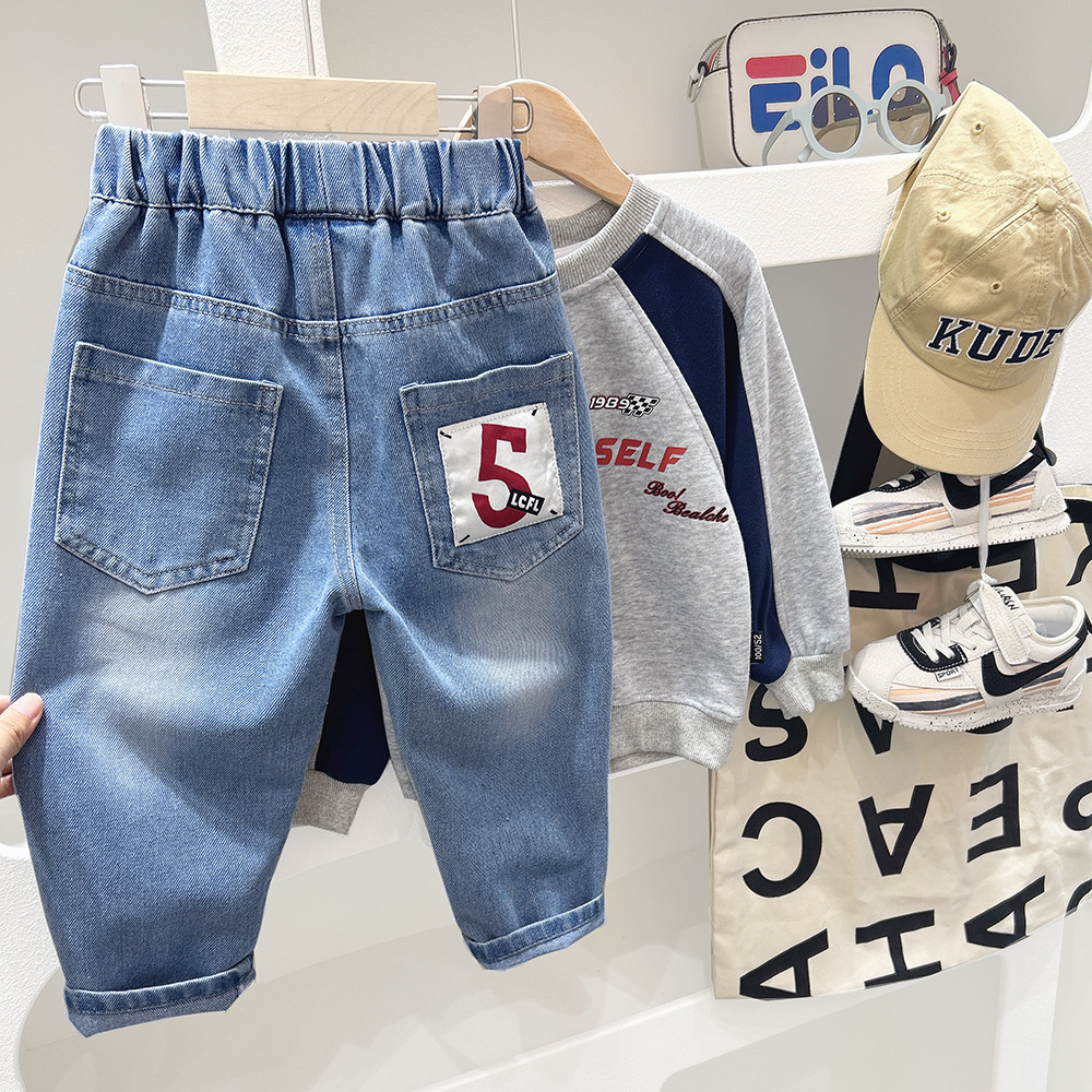 어린이 청바지 소년 가을 바지 2024 새로운 소년 어린이 바지 봄과 가을 중대 어린이 캐주얼 트렌디 바지스토어 가기