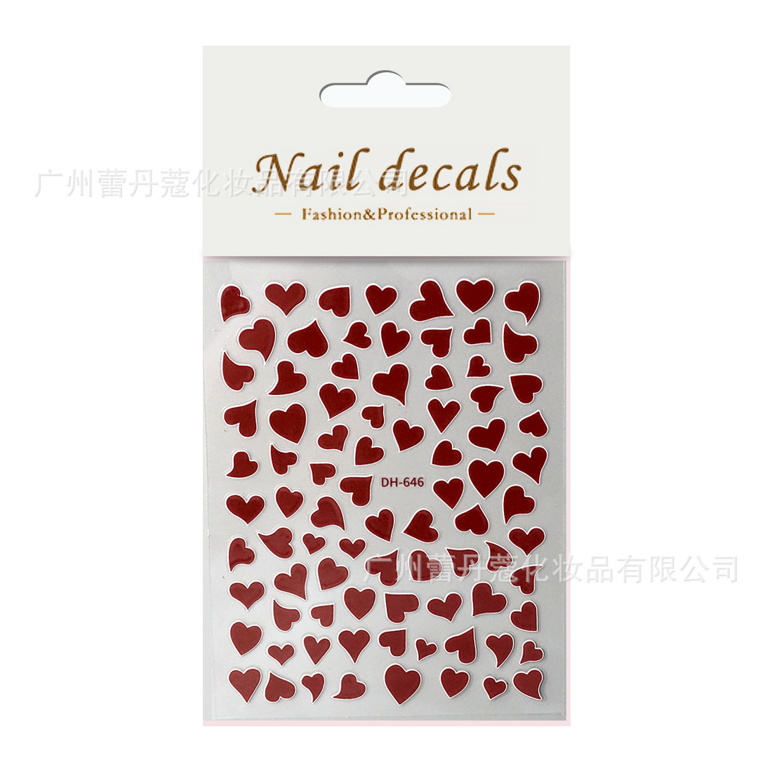 새로운 사랑 3D 입체 네일 아트 스티커 비뚤어진 심장 속이 빈 흑백 버건디 간단한 사랑 라인 네일 데칼스토어 가기