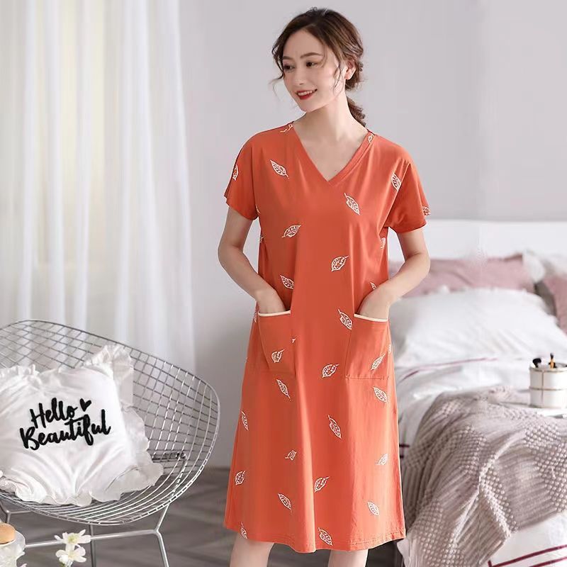 Burqa 어머니 모달 잠옷 여성의 새로운 잠옷 실크 실크 짧은 소매 중년 어머니를위한 얇은 플러스 사이즈 외부에서 착용 할 수 있습니다.스토어 가기