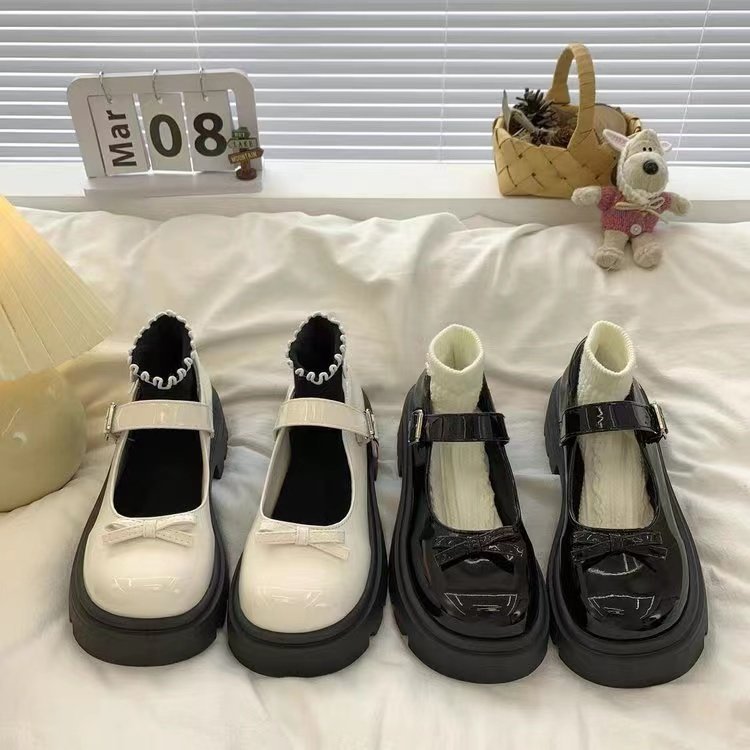 여자의 두꺼운 밑창 두꺼운 굽 메리 제인 가죽 신발 2024 여름 새로운 영국 스타일 유행 올 매치 슬립 온 신발스토어 가기
