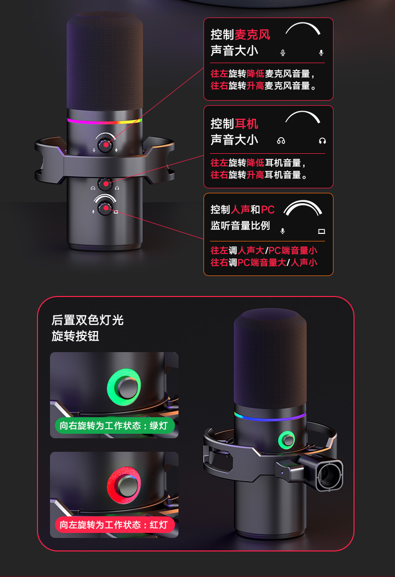 WM8 다이나믹 마이크 XLR 48V 사운드 카드 녹음, 더빙 및 노래 장비 USB 컴퓨터 게임 라이브 마이크