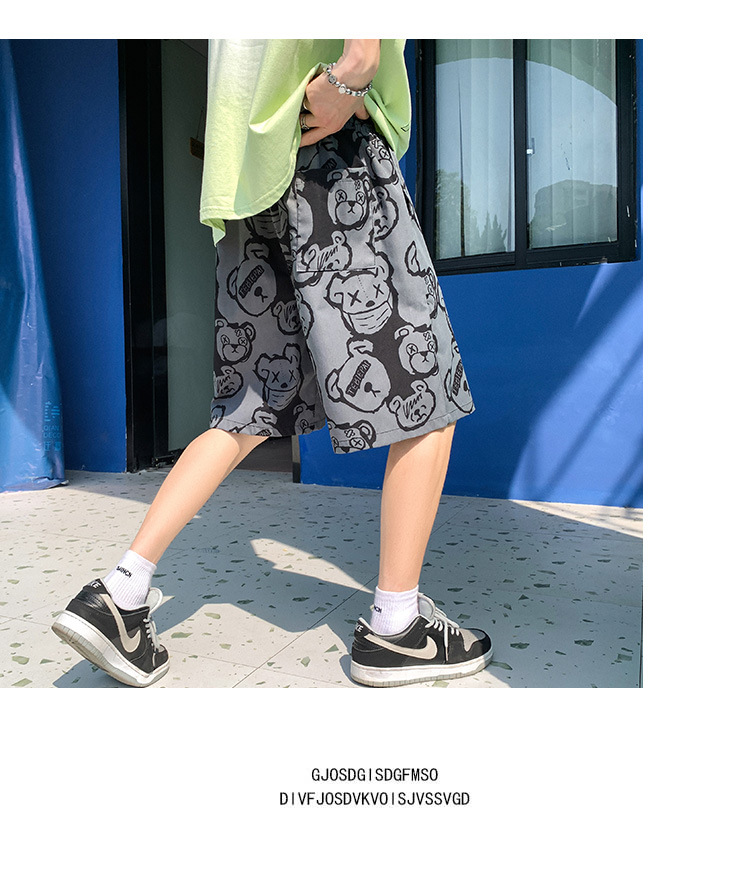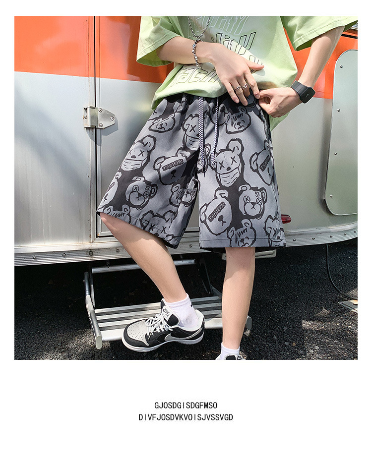 비치 바지 남자 여름 아이스 실크 얇은 꽃 반바지 홈 느슨한 파자마 바지 패션 브랜드 캐주얼 5 점 빠른 건조 대형 바지스토어 가기
