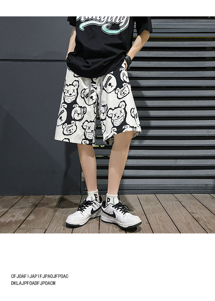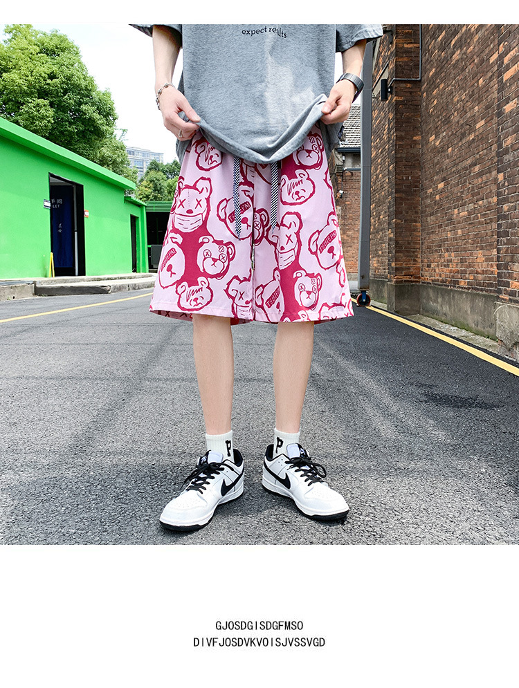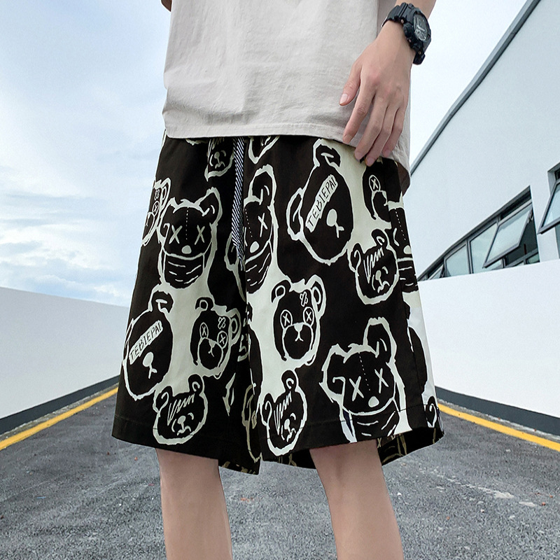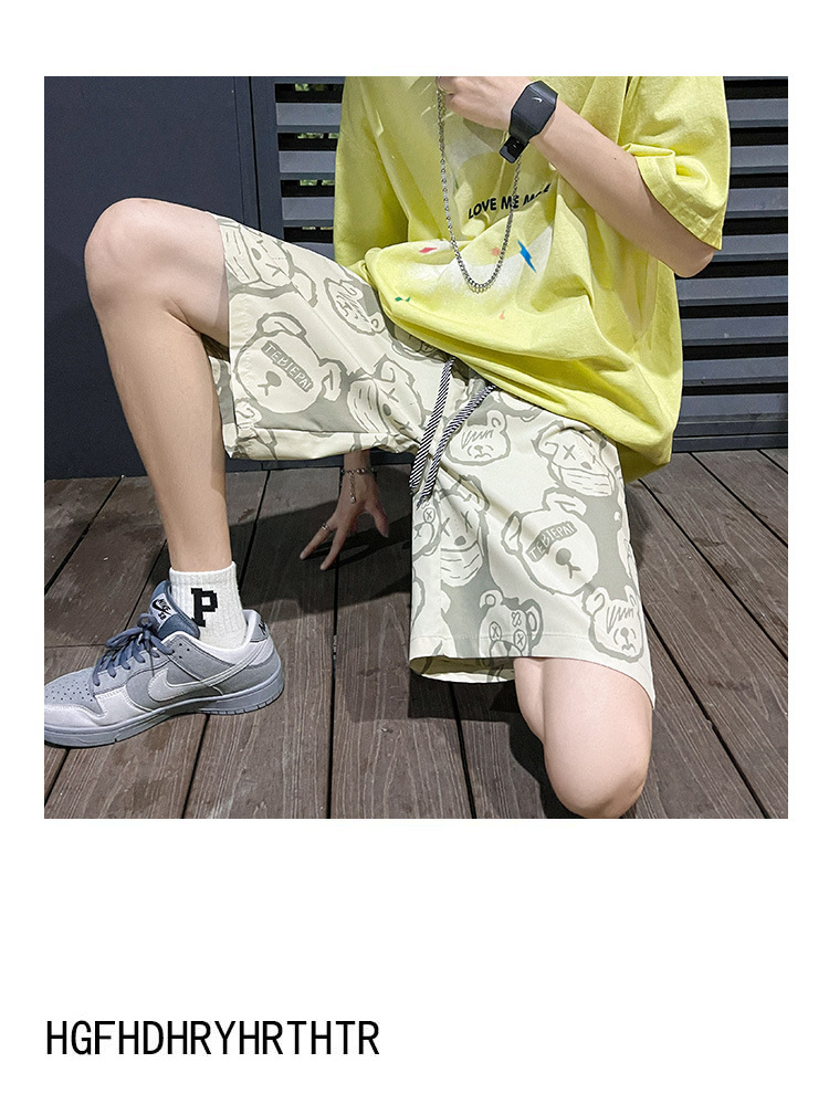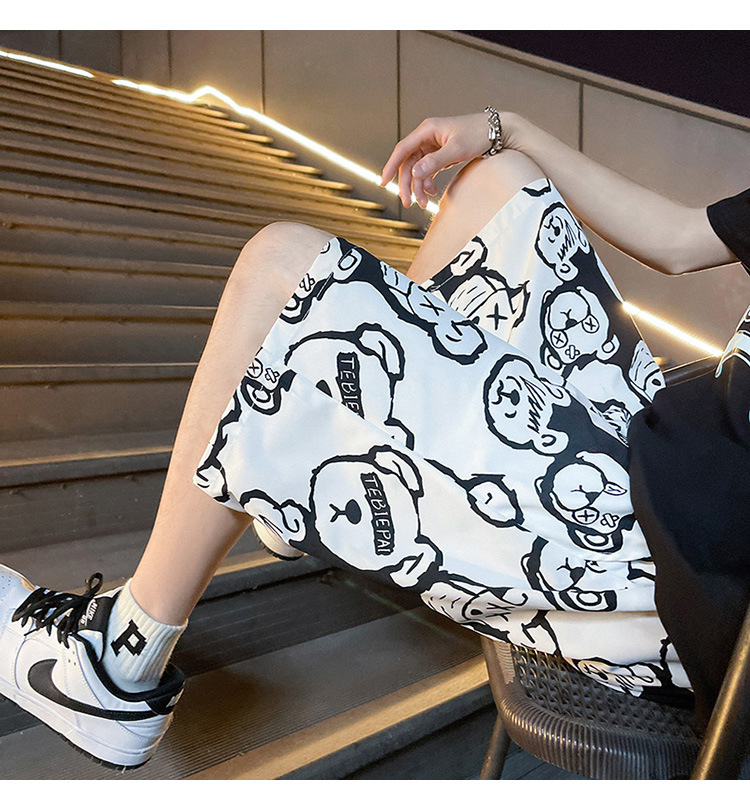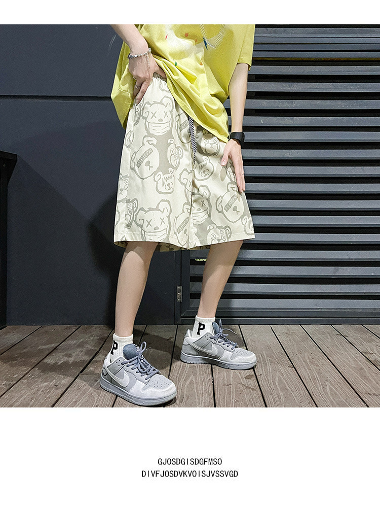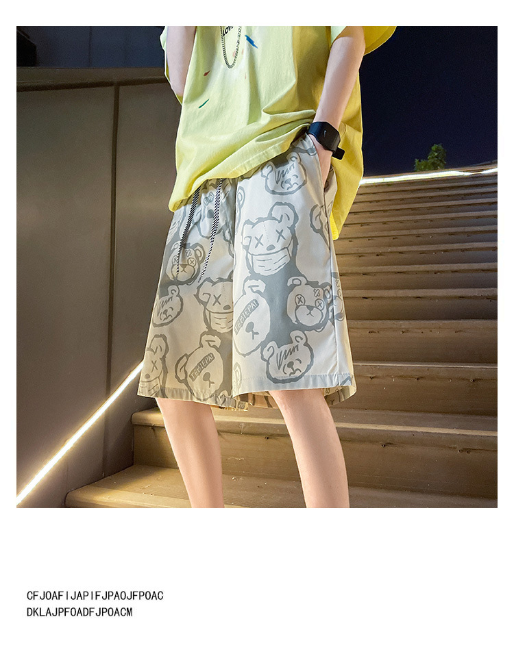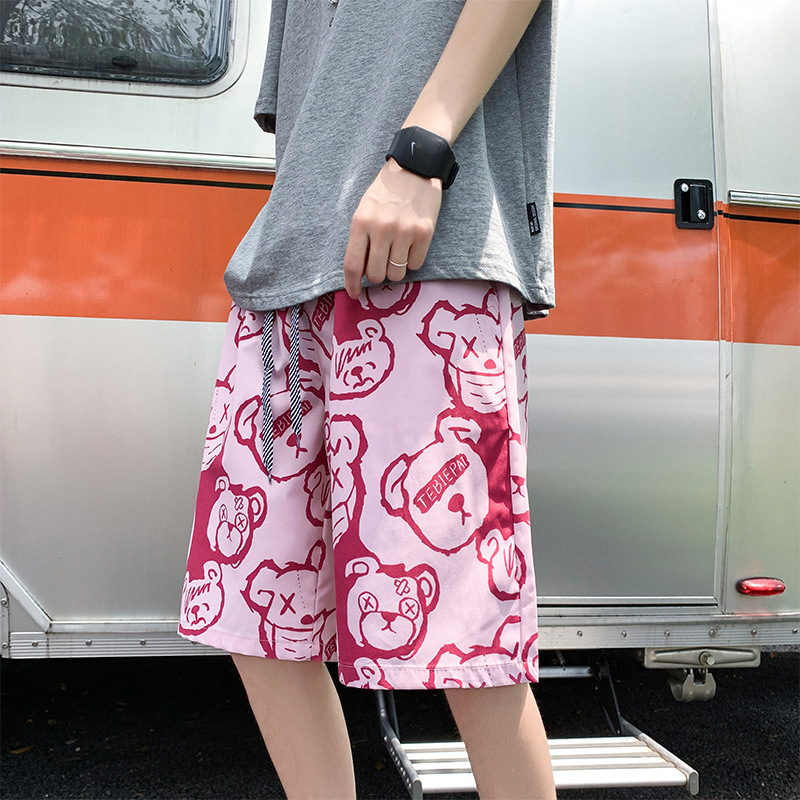 비치 바지 남자 여름 아이스 실크 얇은 꽃 반바지 홈 느슨한 파자마 바지 패션 브랜드 캐주얼 5 점 빠른 건조 대형 바지
