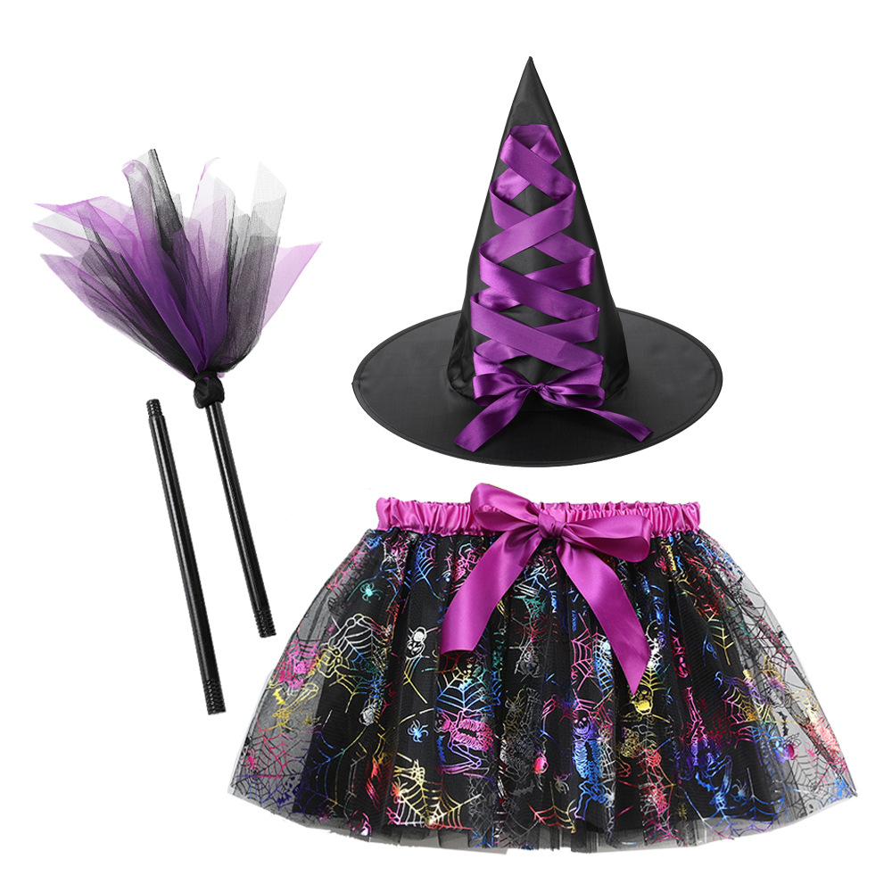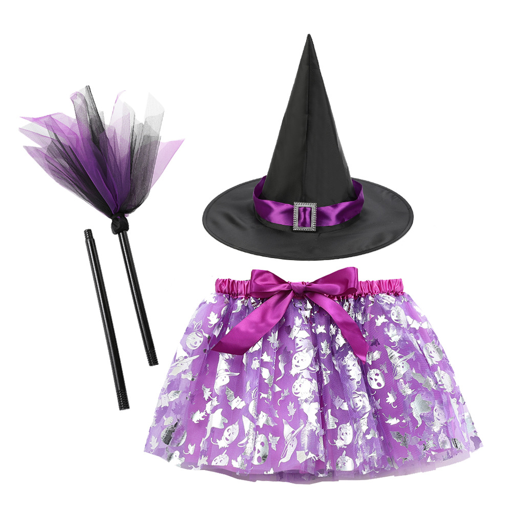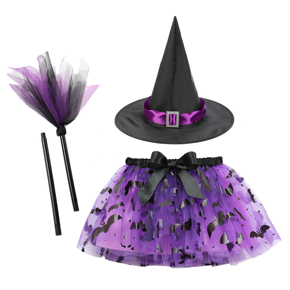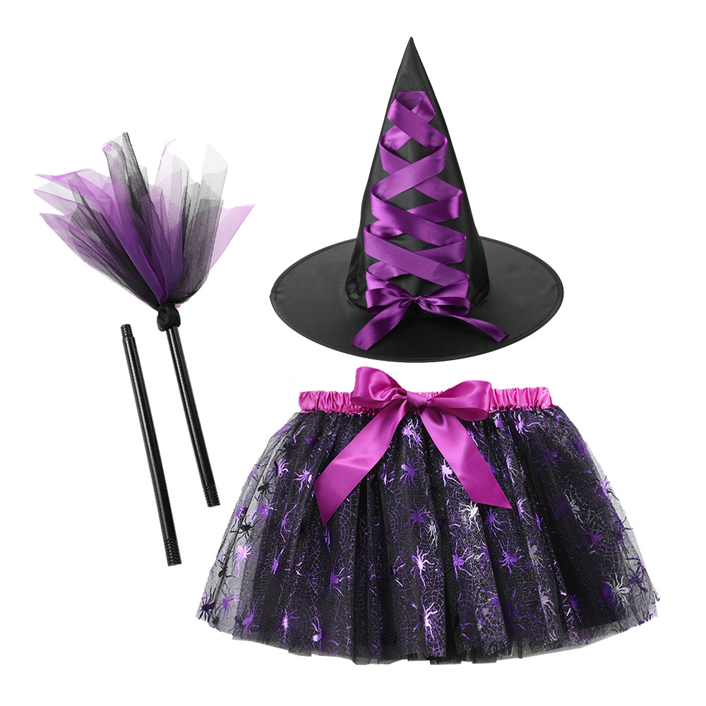 • RSX14+보라색 검정색 빗자루+보라색 끈 마녀 모자