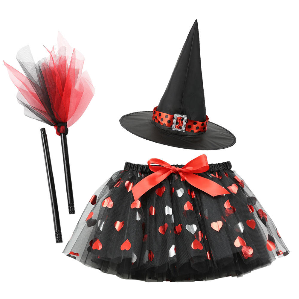 • RS24405+검은색과 빨간색 빗자루+무당벌레 도트 리본 사각 버클 마녀 모자