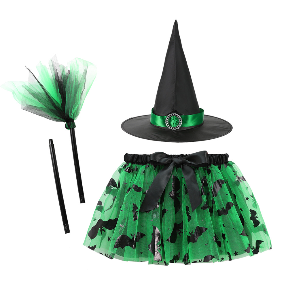 • RSX12 녹색 검은 빗자루 잔디 녹색 리본 둥근 버클 마녀 모자
