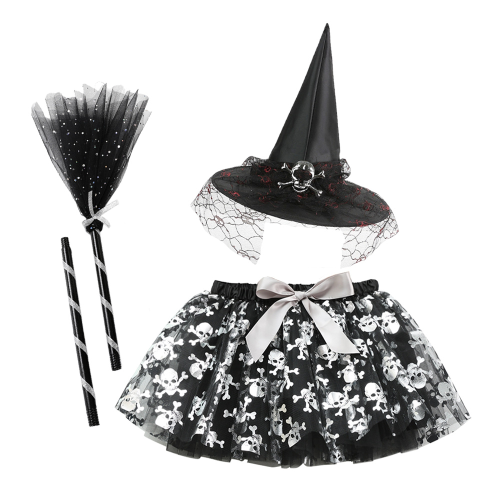 할로윈 인쇄 메쉬 호박 투투 스커트 마녀 모자 Bom 파우치 스커트 3 피스 세트 유럽과 미국 여자 치마스토어 가기