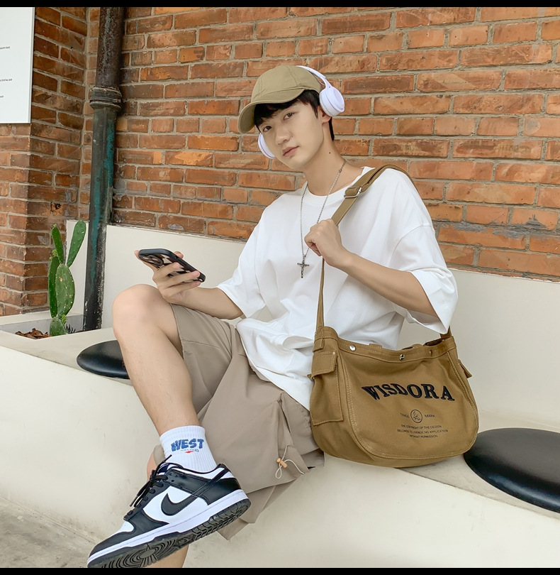 남성용 트렌디 한 브랜드 캔버스 가방 일본 클래스 틈새 크로스 바디 백 학생 캐주얼 대용량 원숄더 메신저 백스토어 가기
