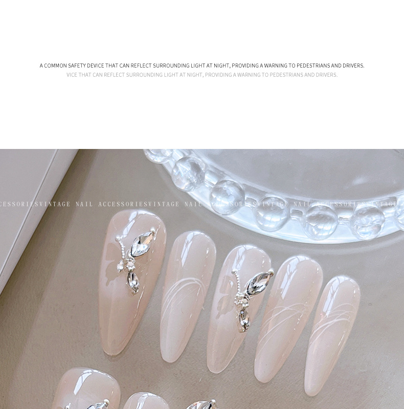 인터넷 연예인 새로운 반 나비 네일 아트 쥬얼리 플래시 라이트 럭셔리 다이아몬드 간단한 조커 금속 네일 액세서리 도매