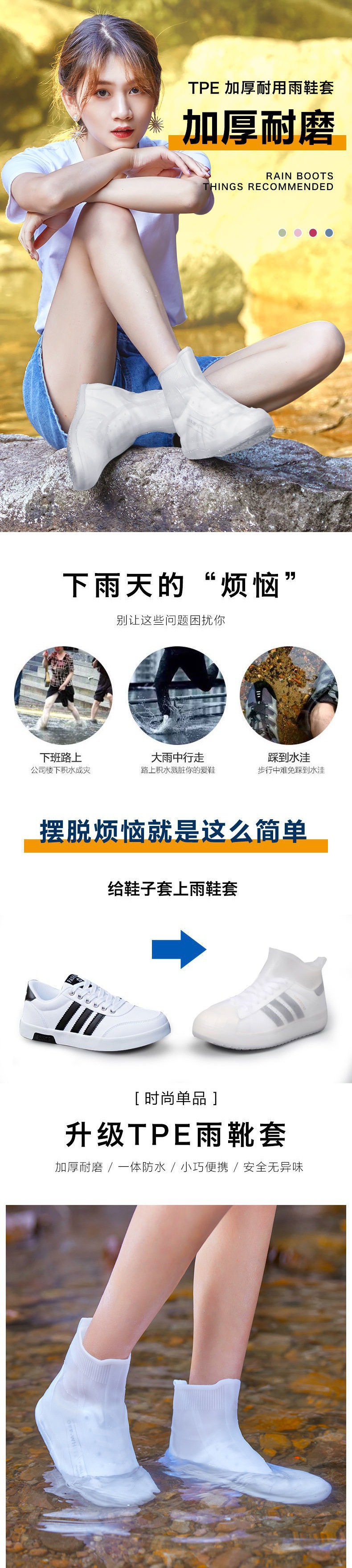 비 신발 커버 비 신발 커버 방수 미끄럼 방지 내마모성 방수 발 커버 실리콘 장화 장화스토어 가기